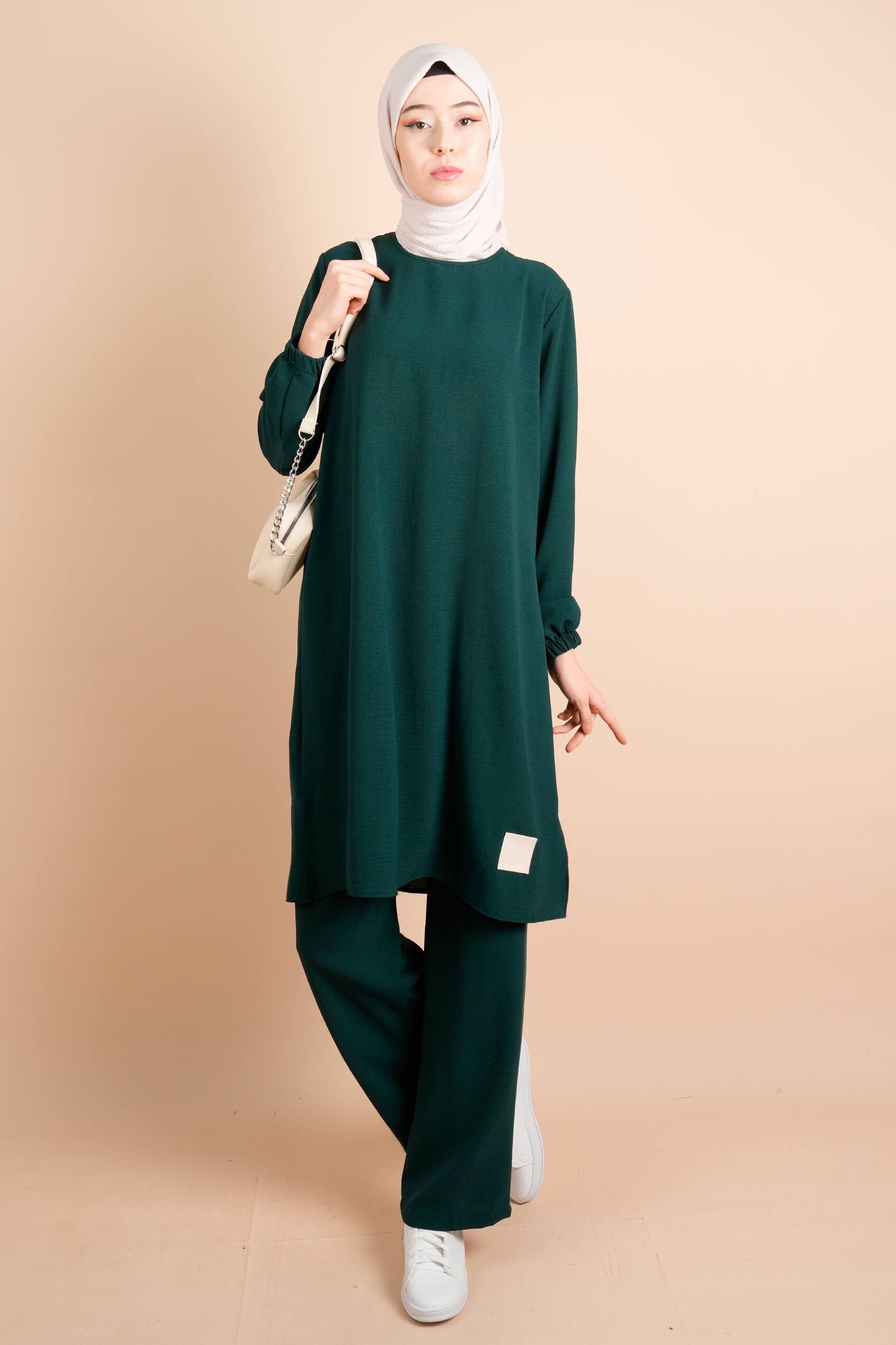 Tesettür Takım Tek Cep Detaylı Poplin Etekli 2'li Takım Yeşil