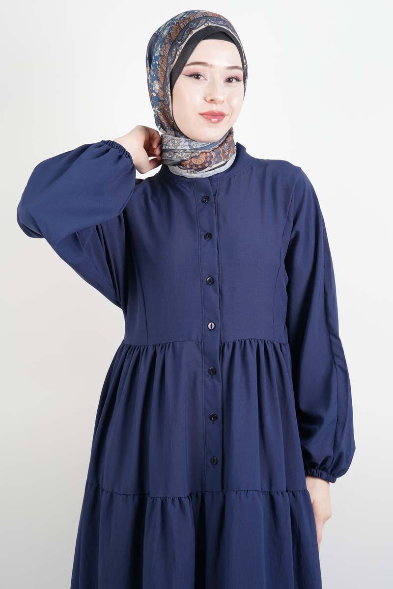 Lacivert tonuyla Alaçatı esintisi taşıyan modal elbise, rahat kalıbı ve hafif yapısıyla günlük şıklığı artırabilir.