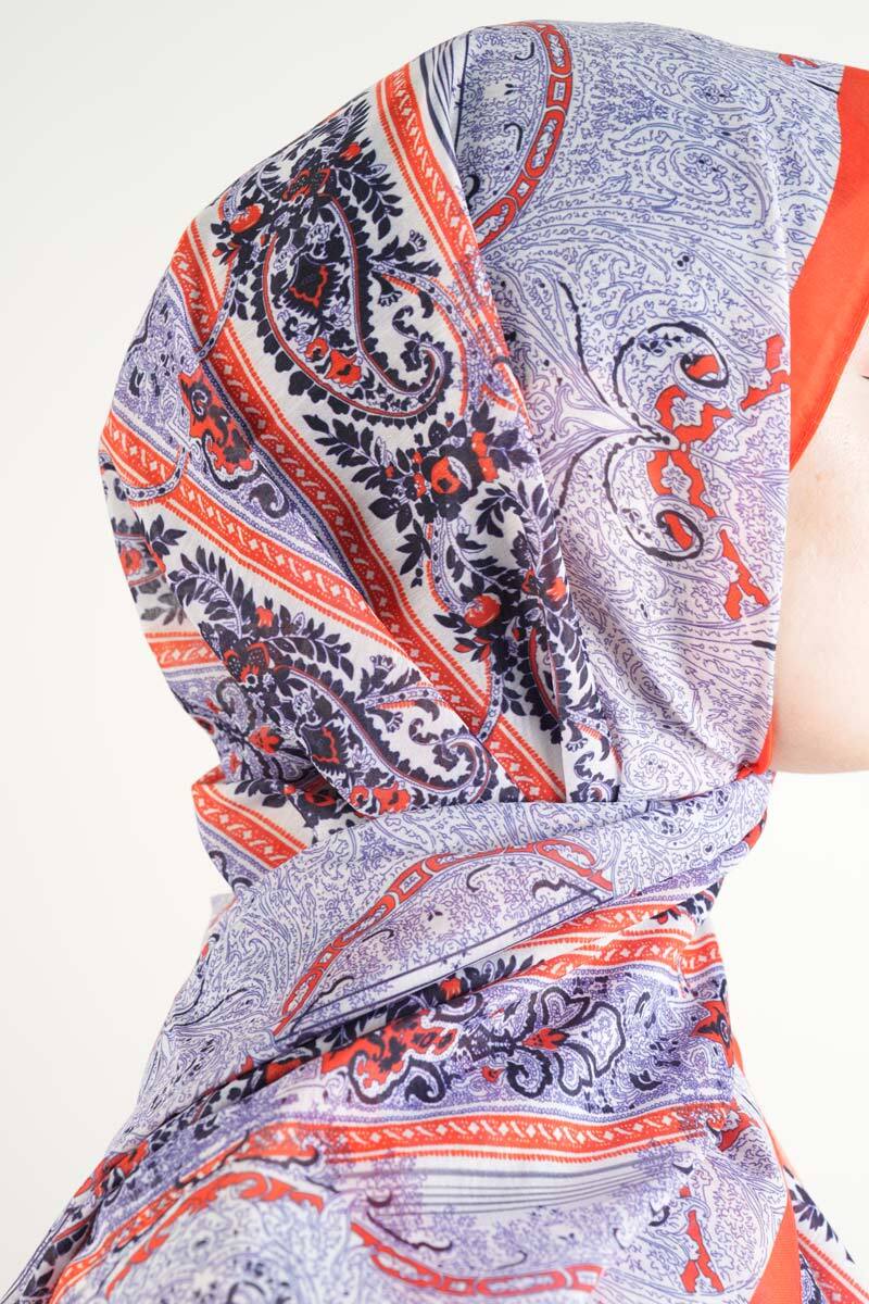 Canlı turuncu tonları ve otantik desenleriyle yaz-kış kullanıma uygun, enerjik bir aksesuar.