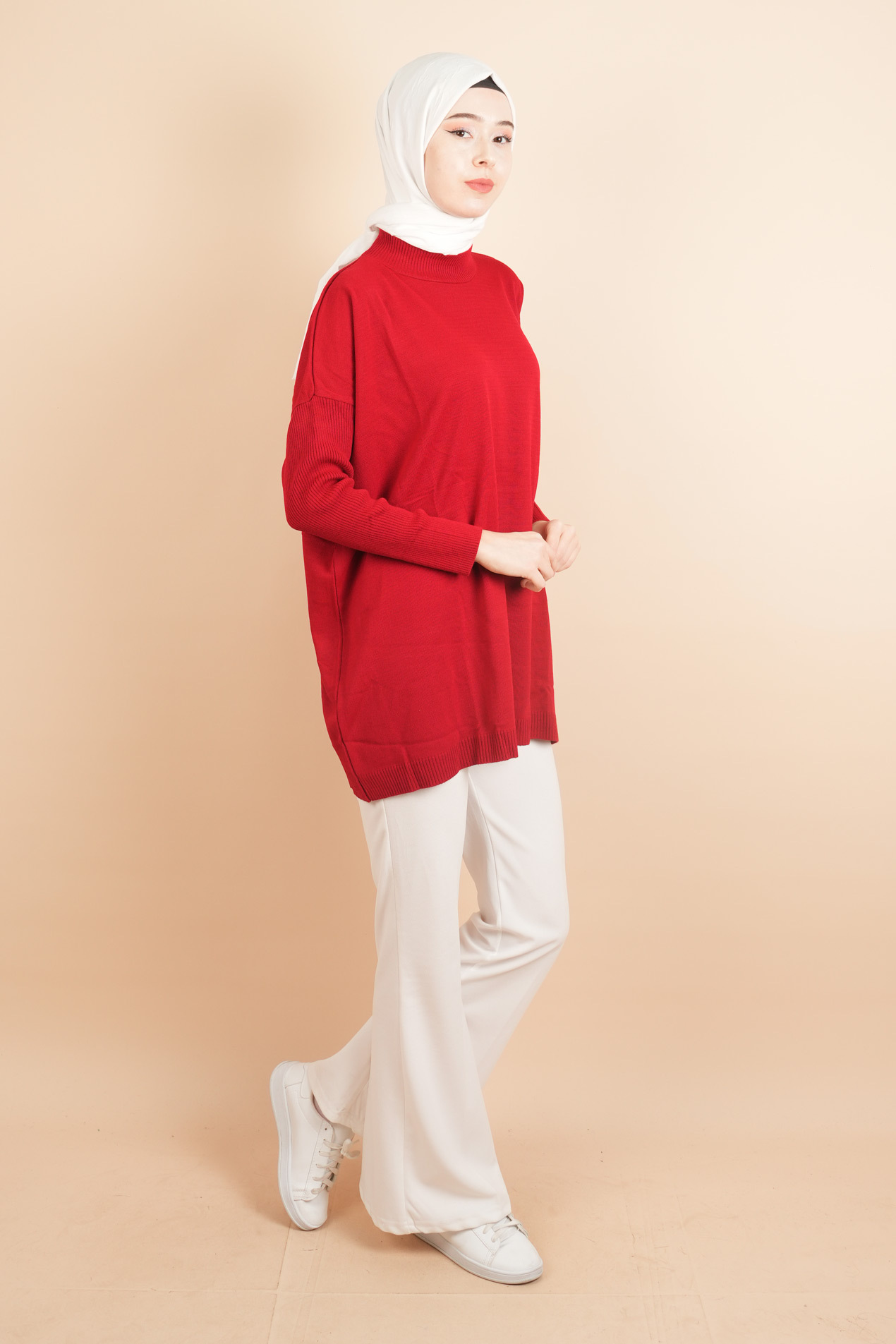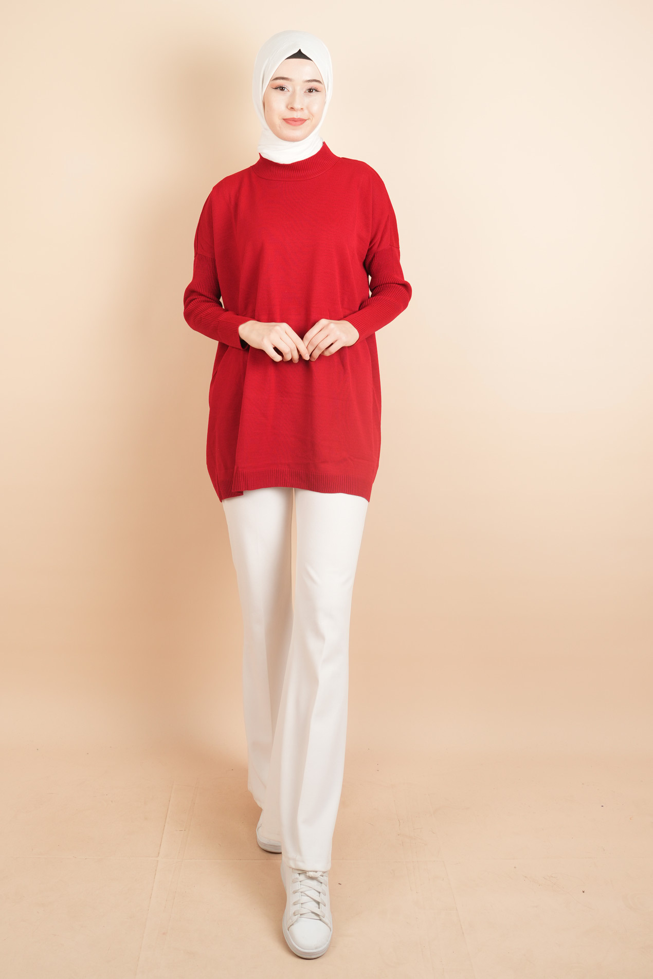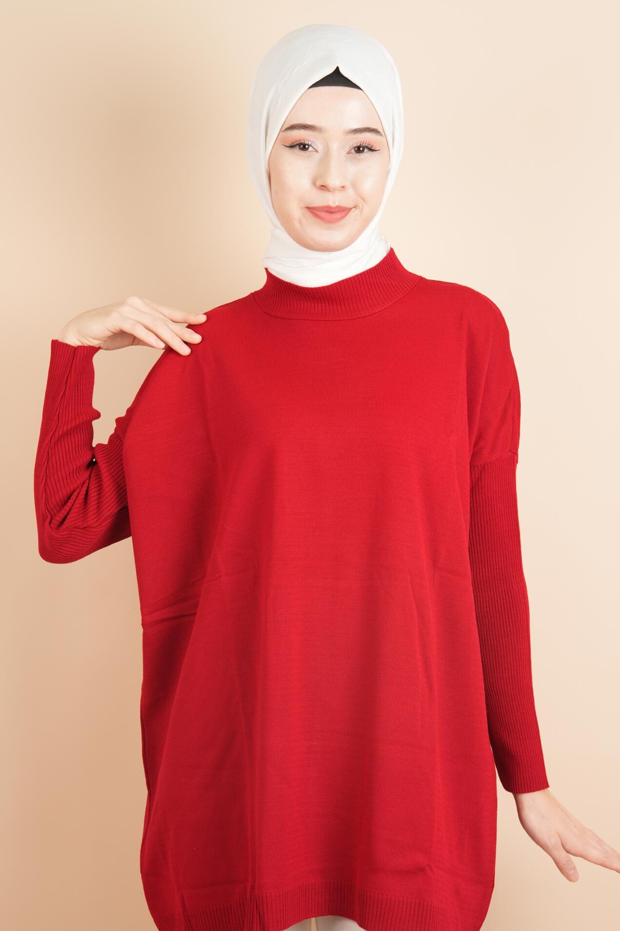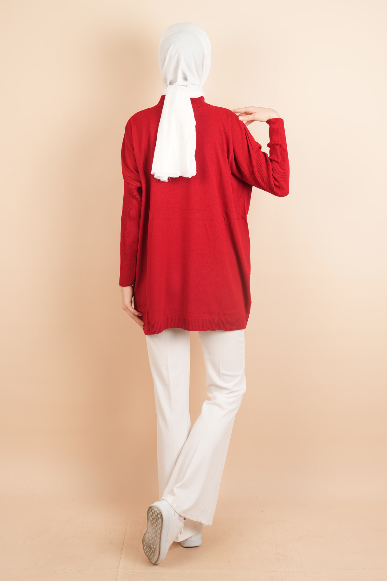 Fitil Kol Yarım Balıkçı Yarasa Kol Kazak Kırmızı