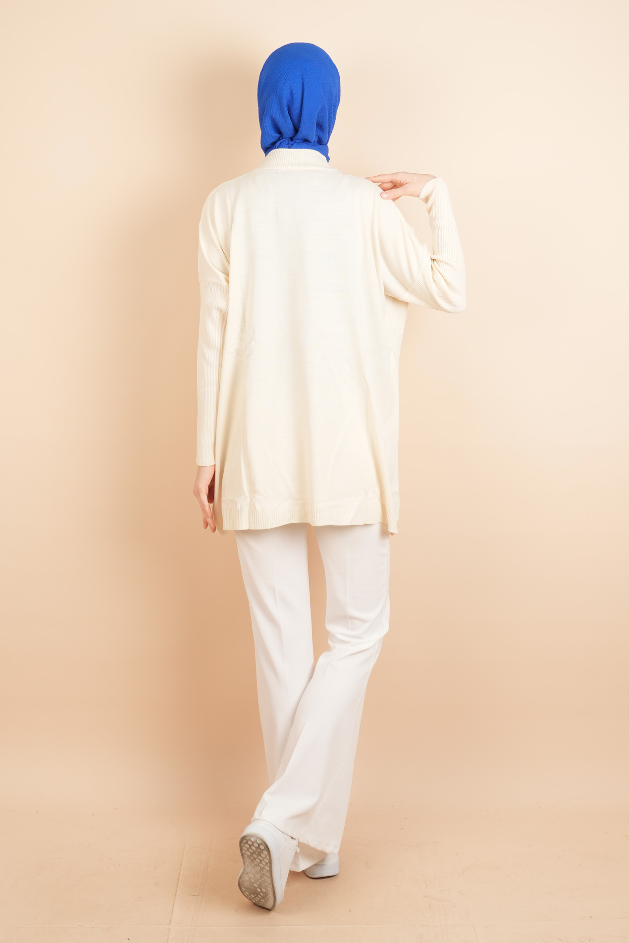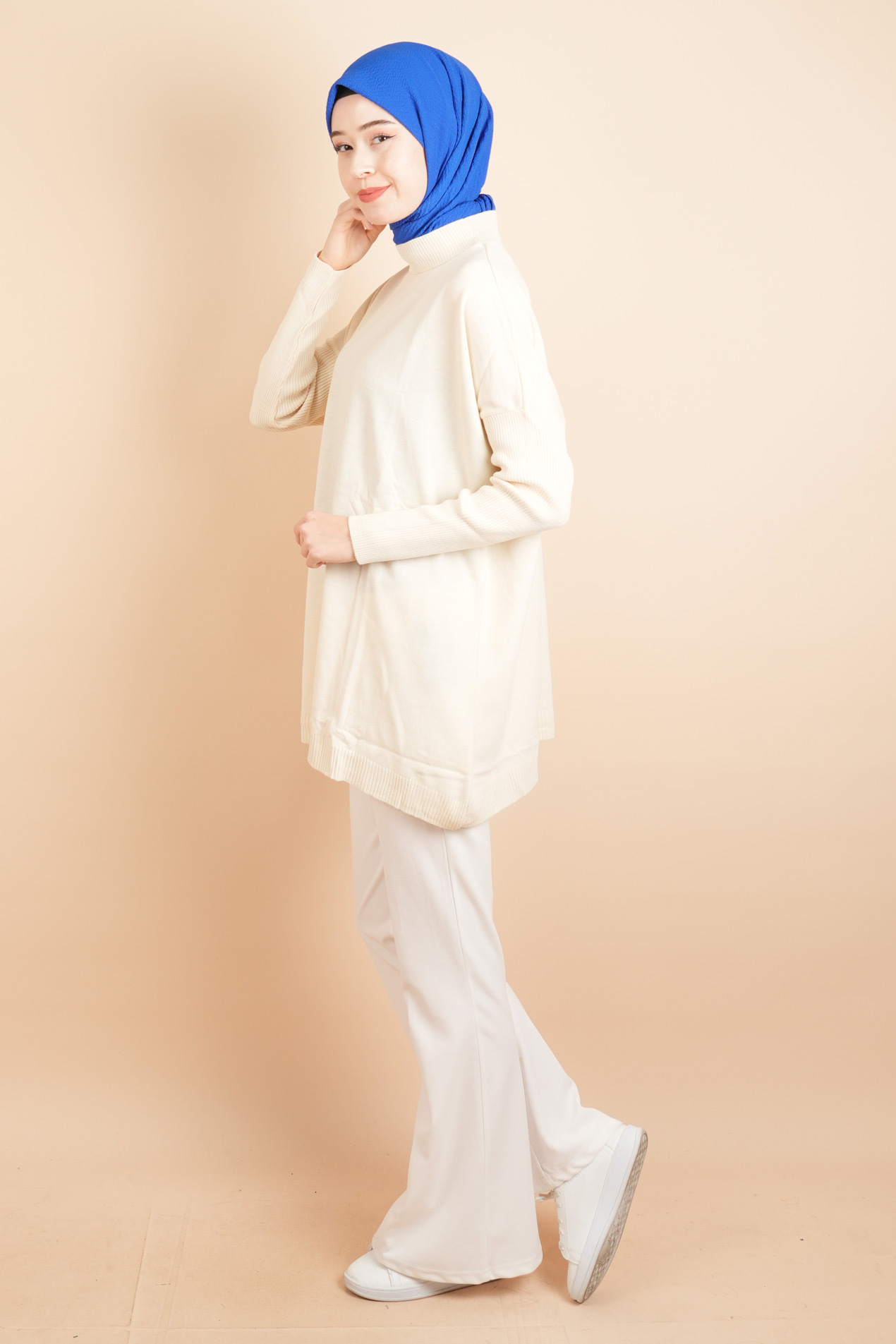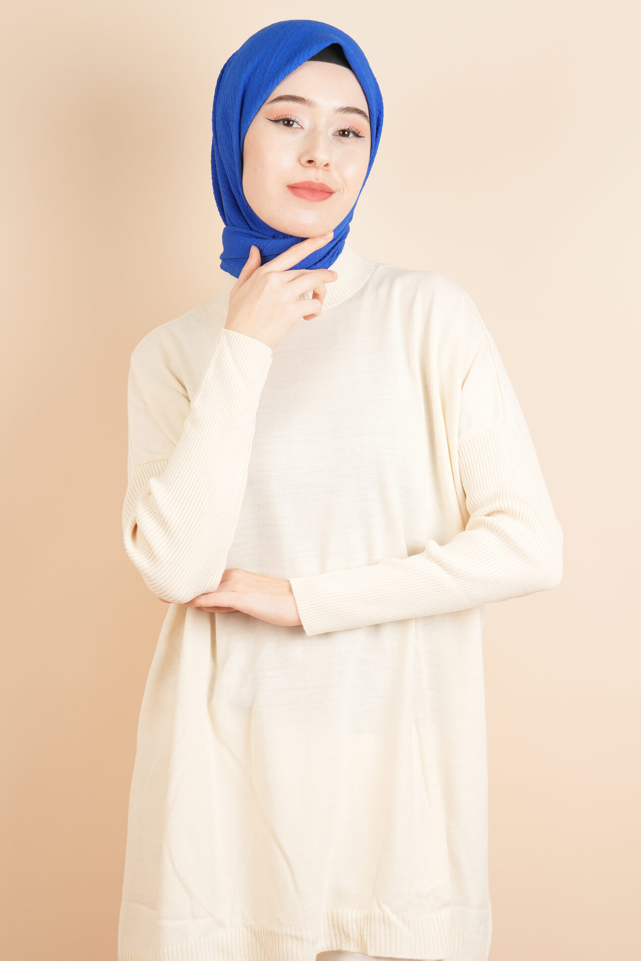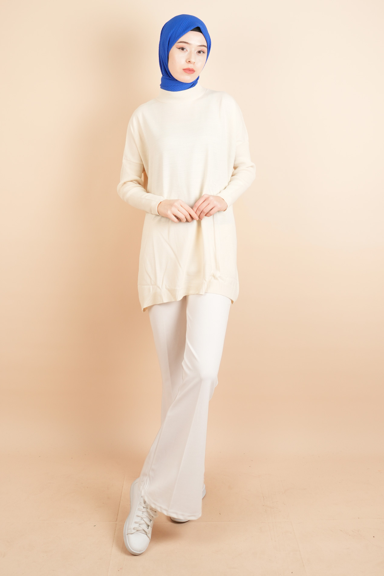 Fitil Kol Yarım Balıkçı Yarasa Kol Kazak Krem
