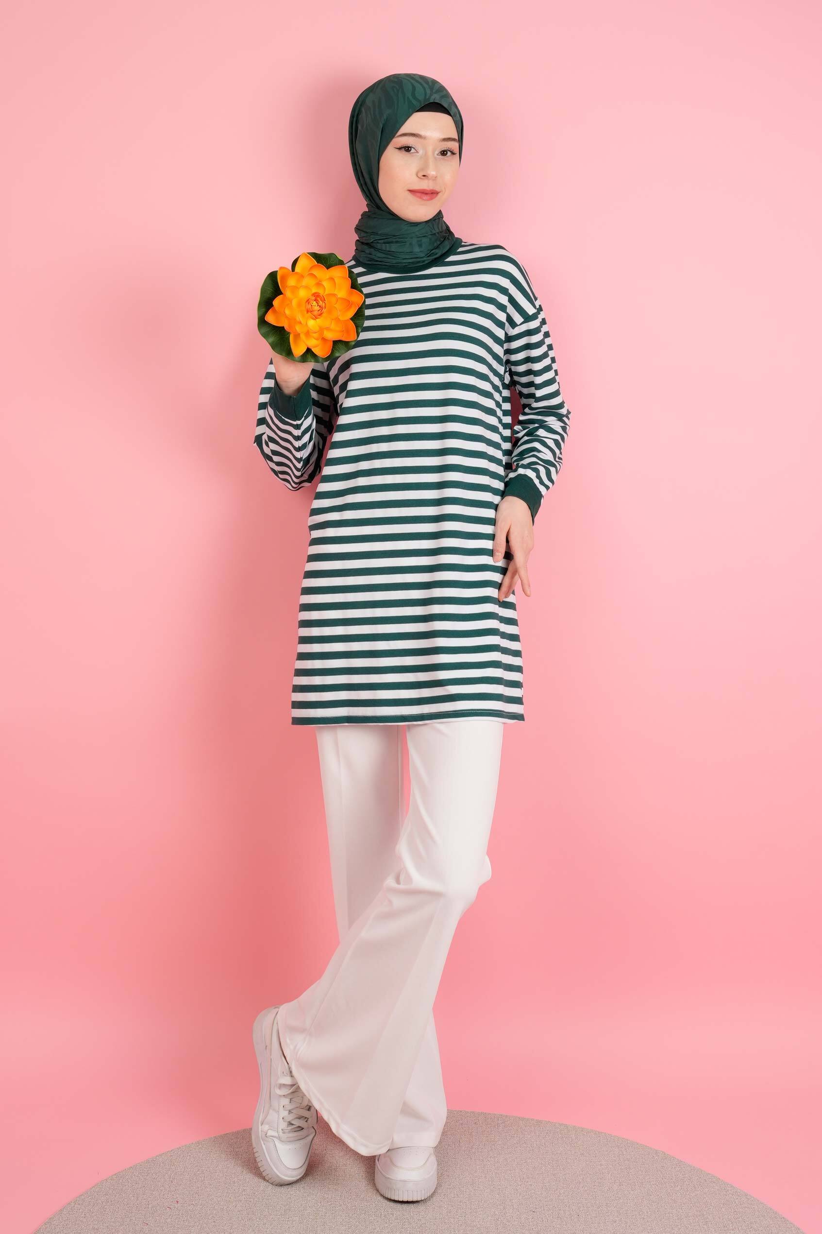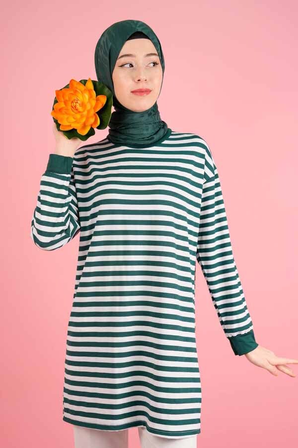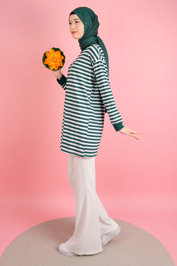Yaz aylarının vazgeçilmezi! Düşük omuzlu ve bisiklet yaka detaylı yeni sezon çizgili penye tesettür tunik ile yazın rahatlığını ve şıklığını yakalayın. Hafif kumaşıyla serin kalmanızı sağlarken, ince çizgi deseniyle modern bir görünüm sunar. Yazlık kombinlerinizin favorisi olacak çok renk seçenekleriyle... Hemen Alın!
