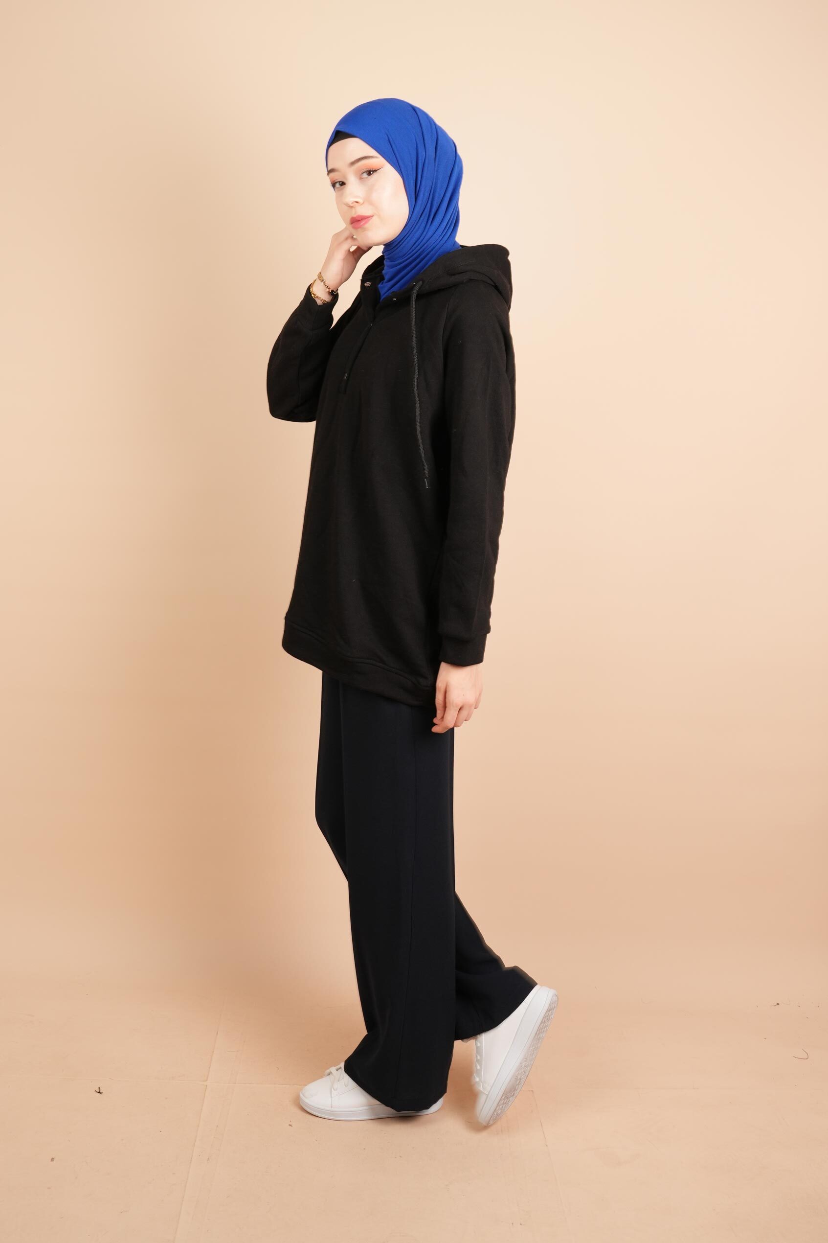 "Kapüşonlu Yarım Çıtçıt Detaylı Sweat, spor ve şıklığı bir arada sunar. Günlük kullanım için ideal, modern bir tasarım.