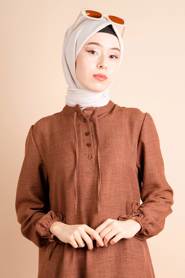 yarım düğmeli elbise açık kahverengi