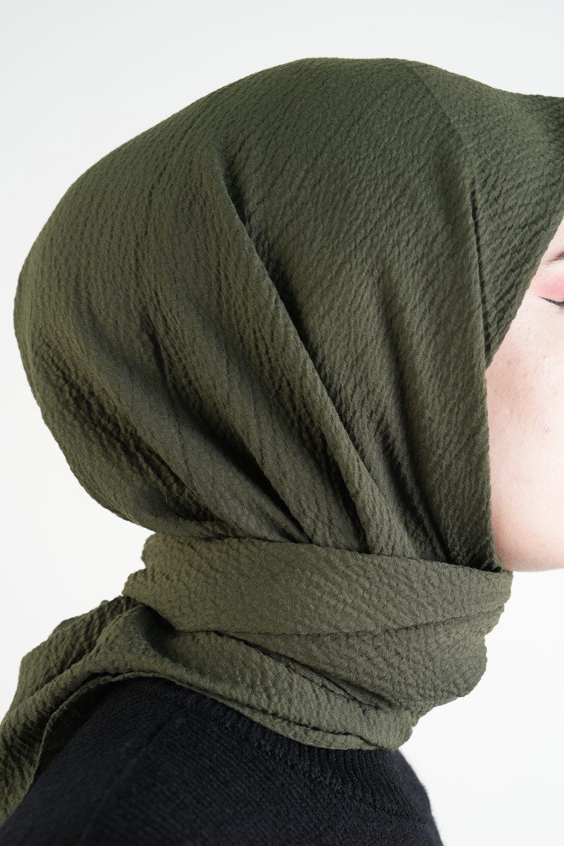 Haki rengiyle doğallığı yansıtan bu pamuk eşarp, günlük kombinlerinize sıcak bir dokunuş katıyor.
