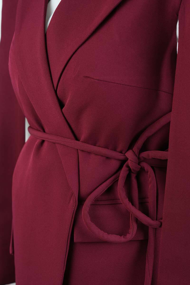Tesettür Blazer Takım Omuz Tasarım Yelekli Blazer İkili Takım Bordo
