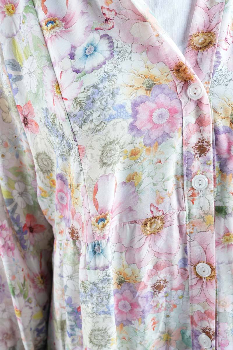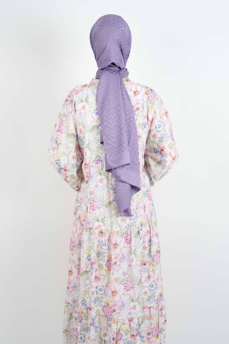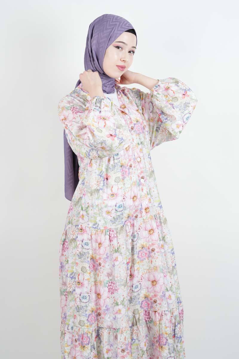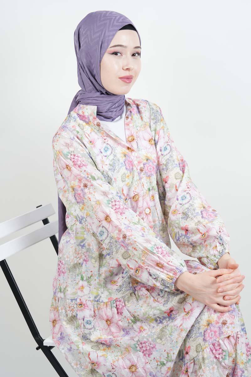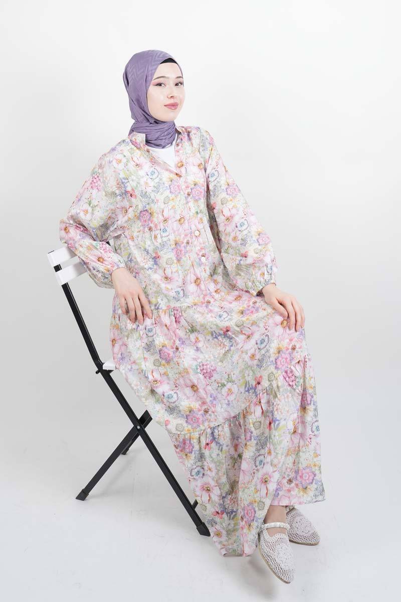 Tesettür Elbise Dijital Baskılı Alaçatı Model Modal Elbise Pembe