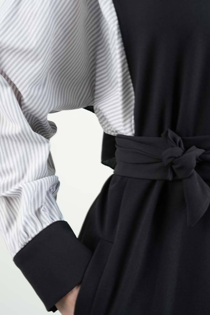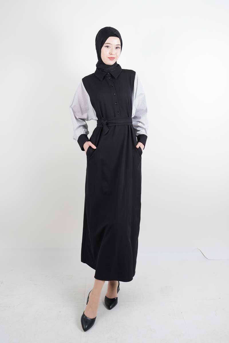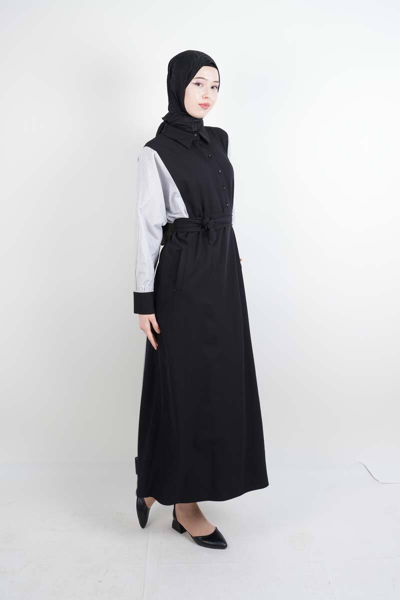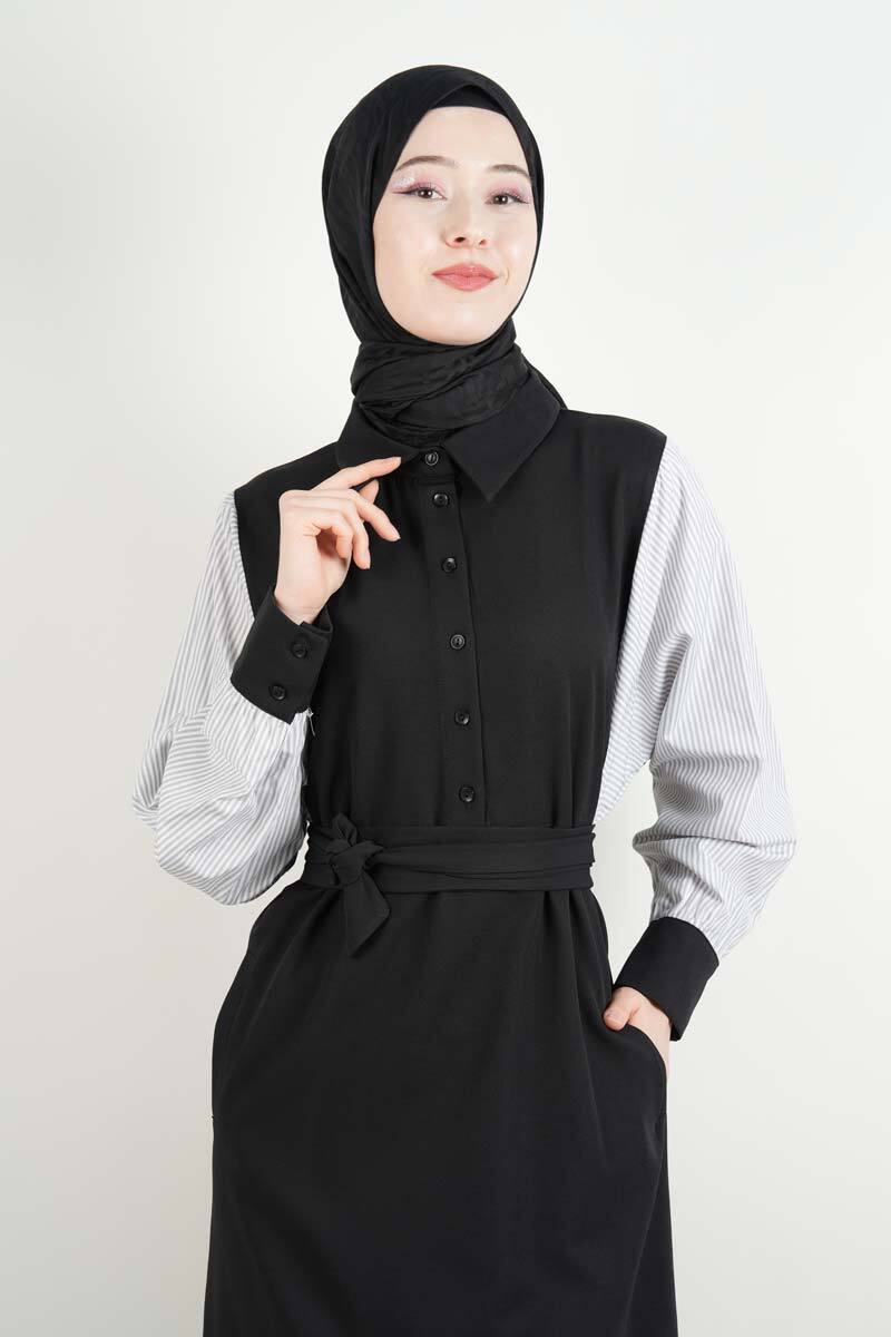 Kolu gömlek detaylı, cepli ve rahat kalıp tesettür elbise; günlük şıklık ve konforu bir arada sunar. Hafif yapısı ve kullanışlı cepleriyle gün boyu rahat hareket etmenizi sağlar. Günlük kullanım ve iş ortamı için ideal, sade ve modern bir tercih.