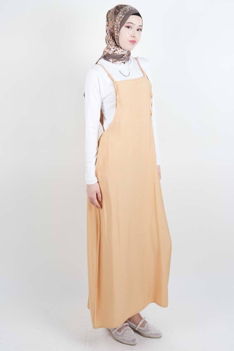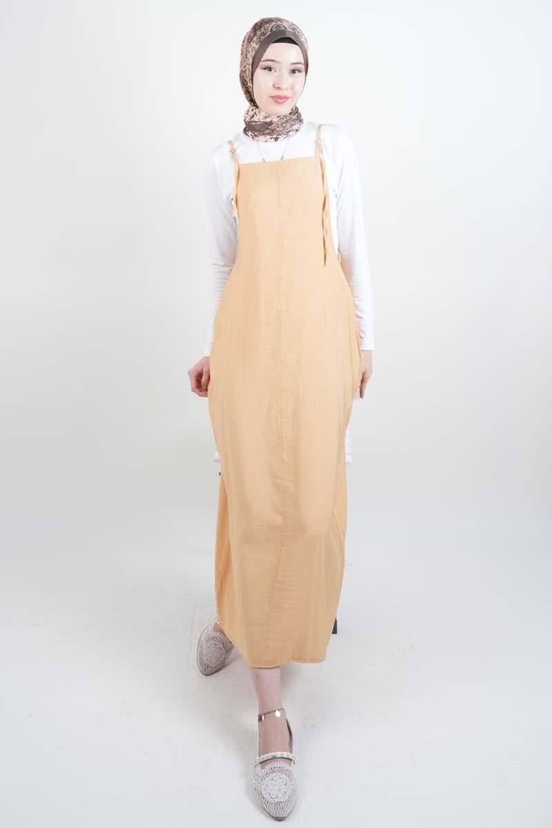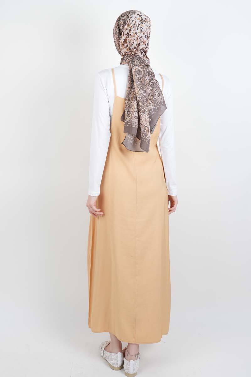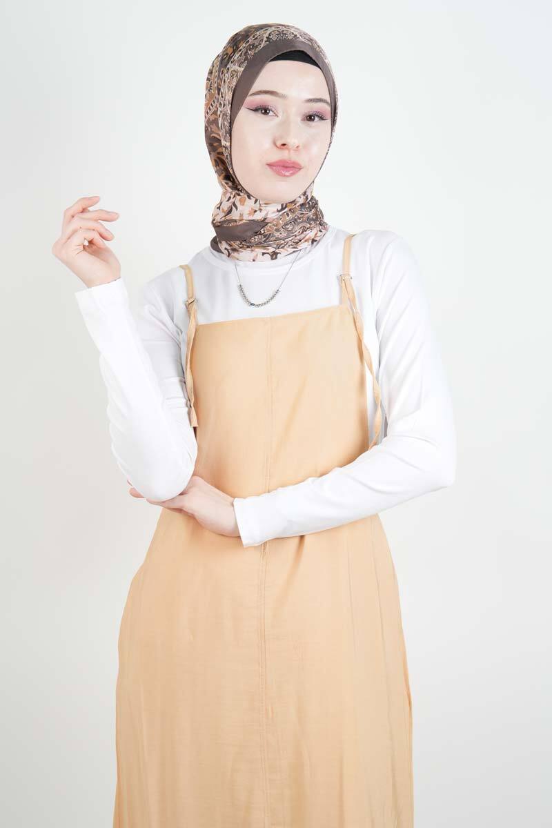 Tesettür Elbise Ön Biyeli Modal Jile Bej