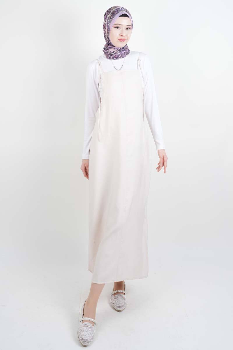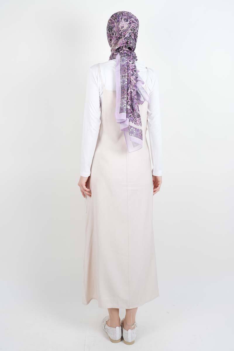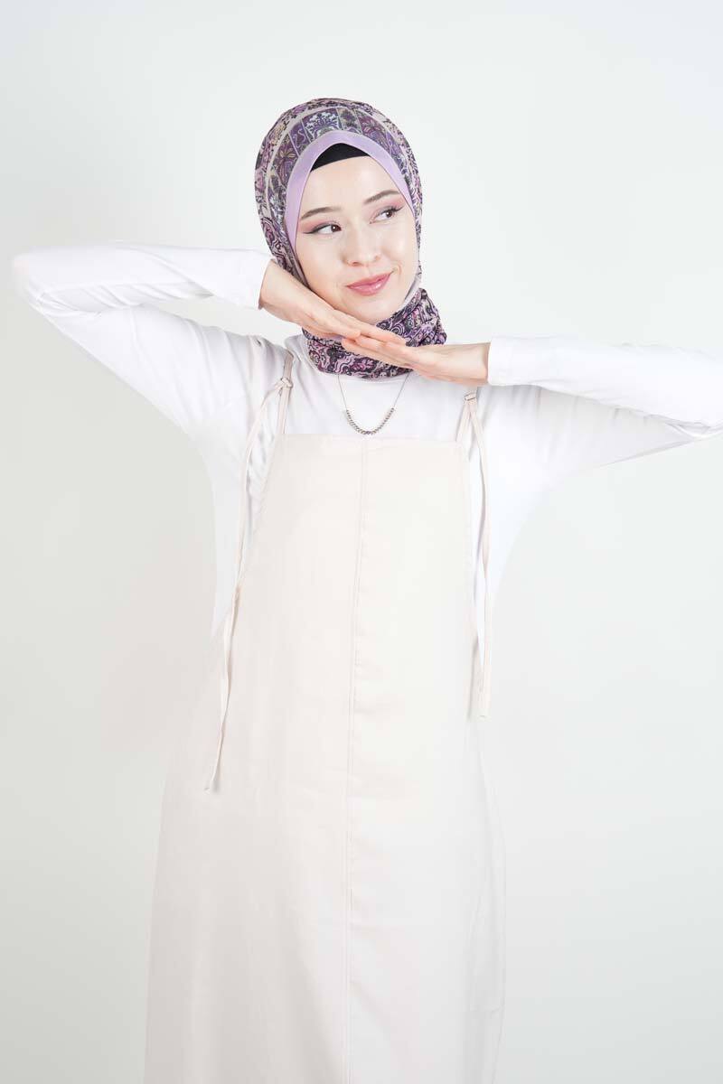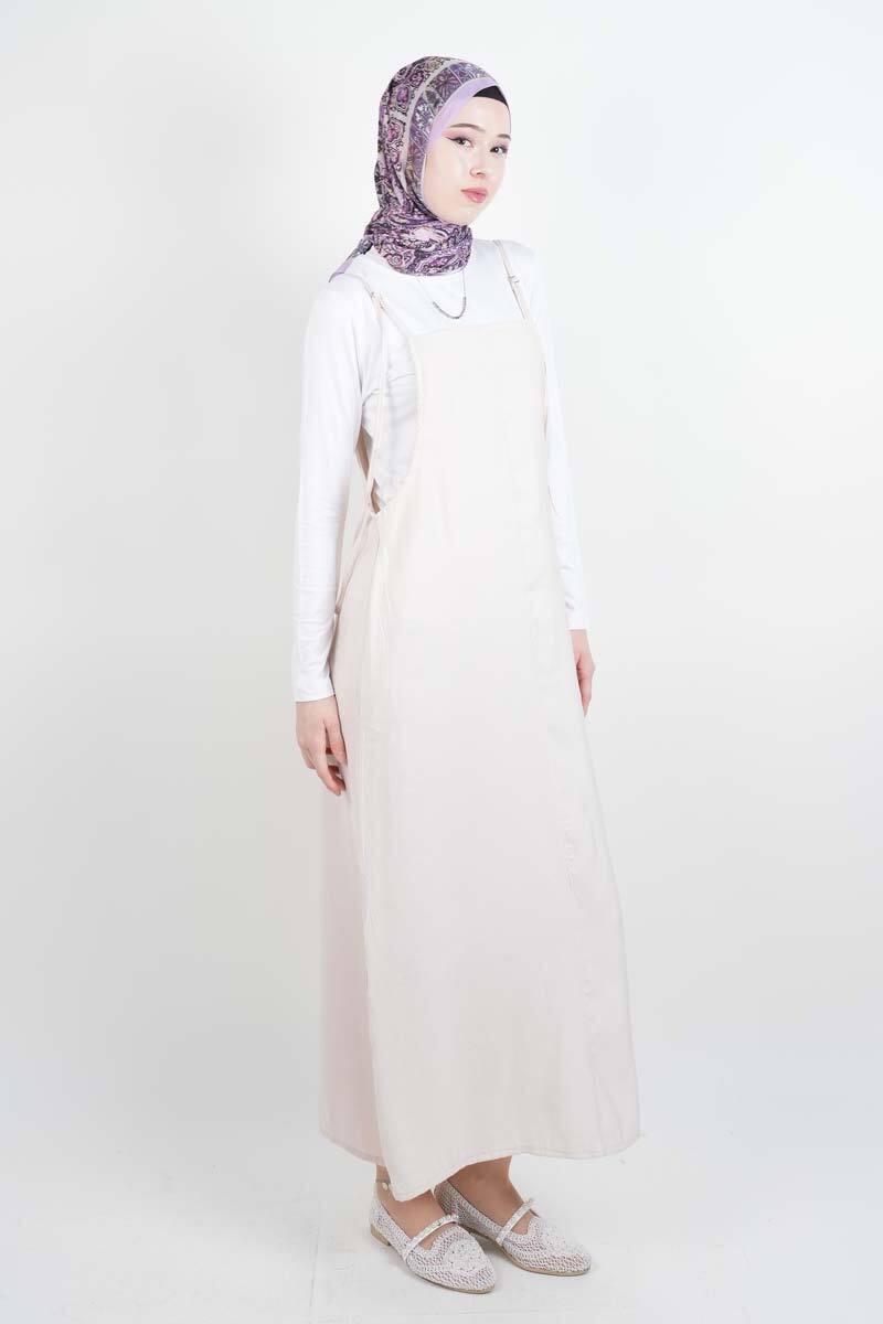 Tesettür Elbise Ön Biyeli Modal Jile Krem
