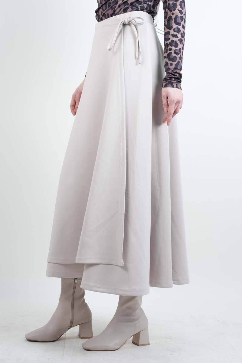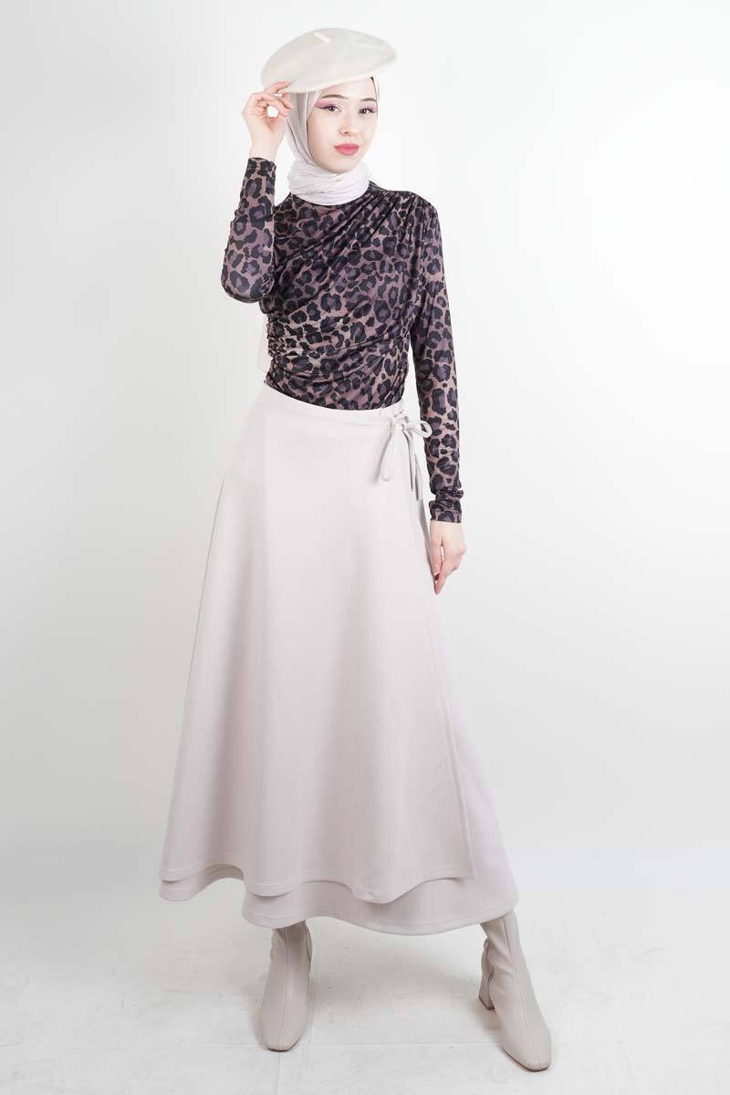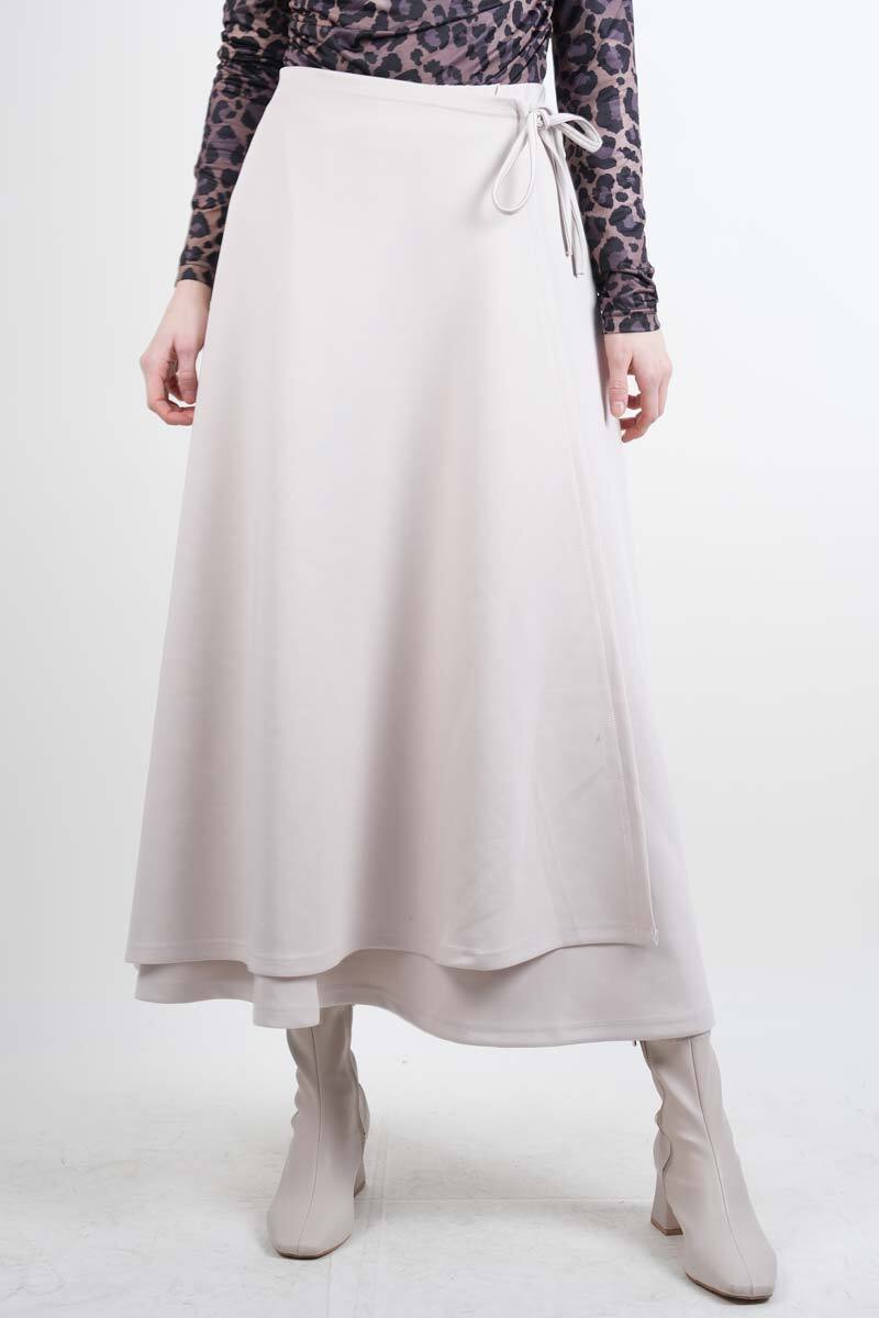 Tesettür Etek Yandan Çapraz Bağlamalı Scuba Etek Krem