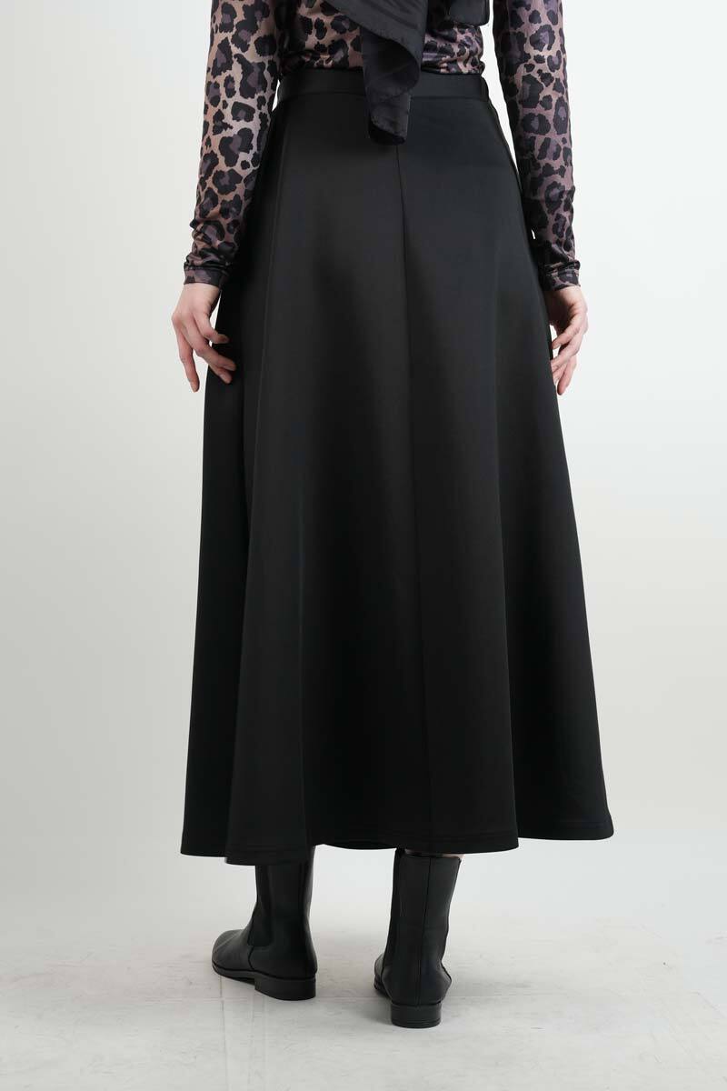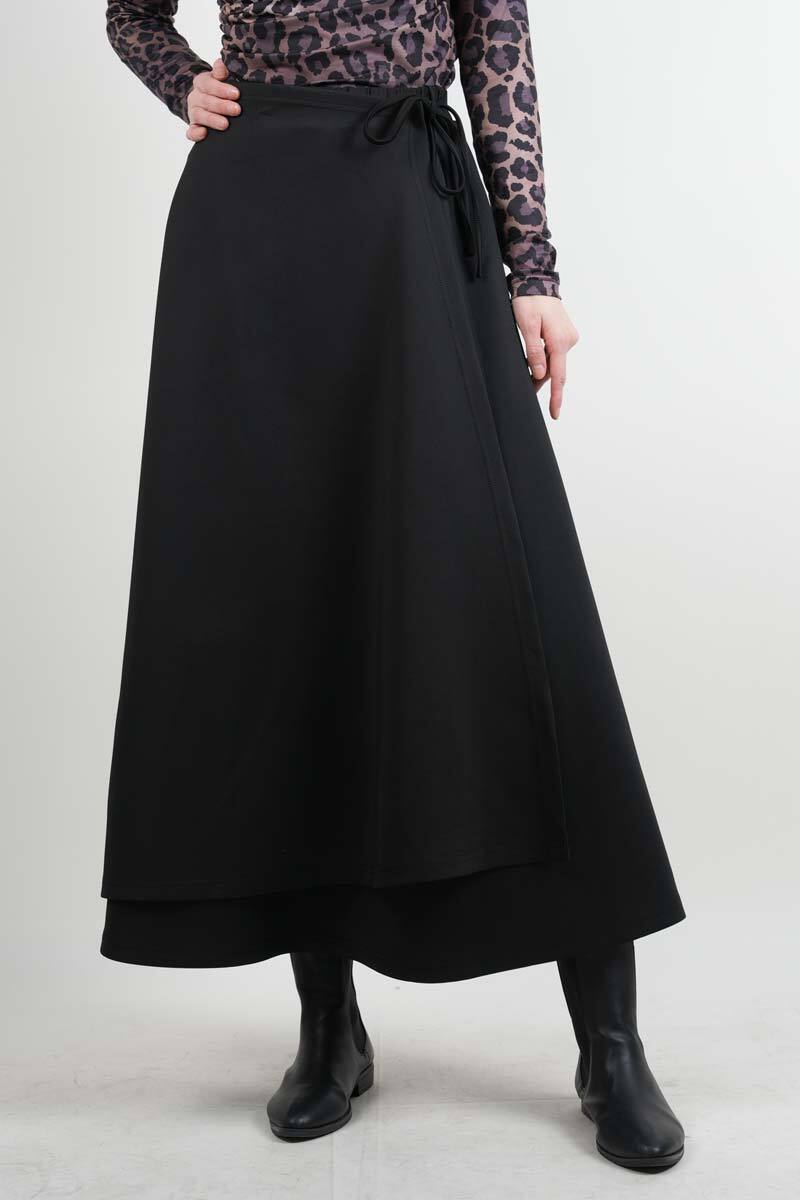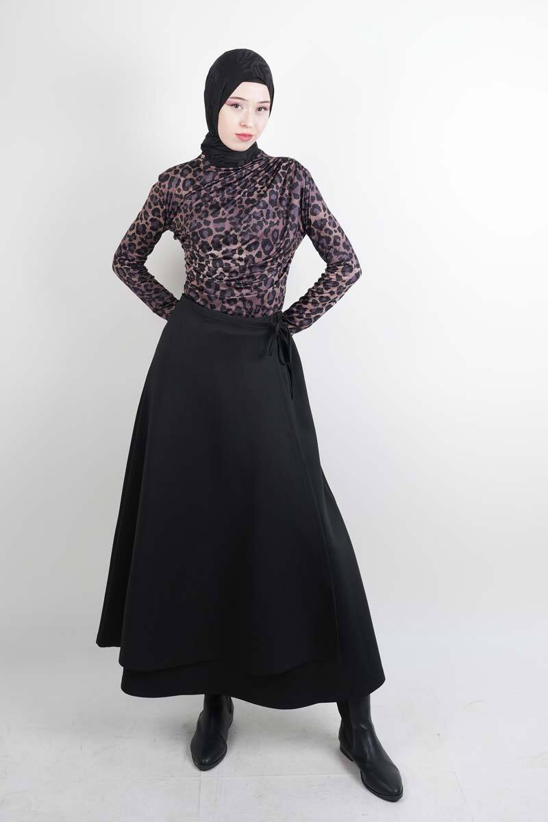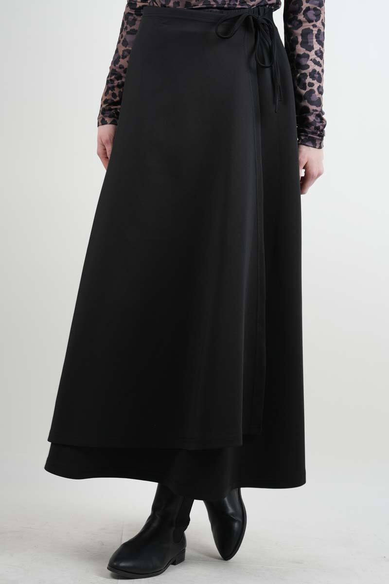 Tesettür Etek Yandan Çapraz Bağlamalı Scuba Etek Siyah