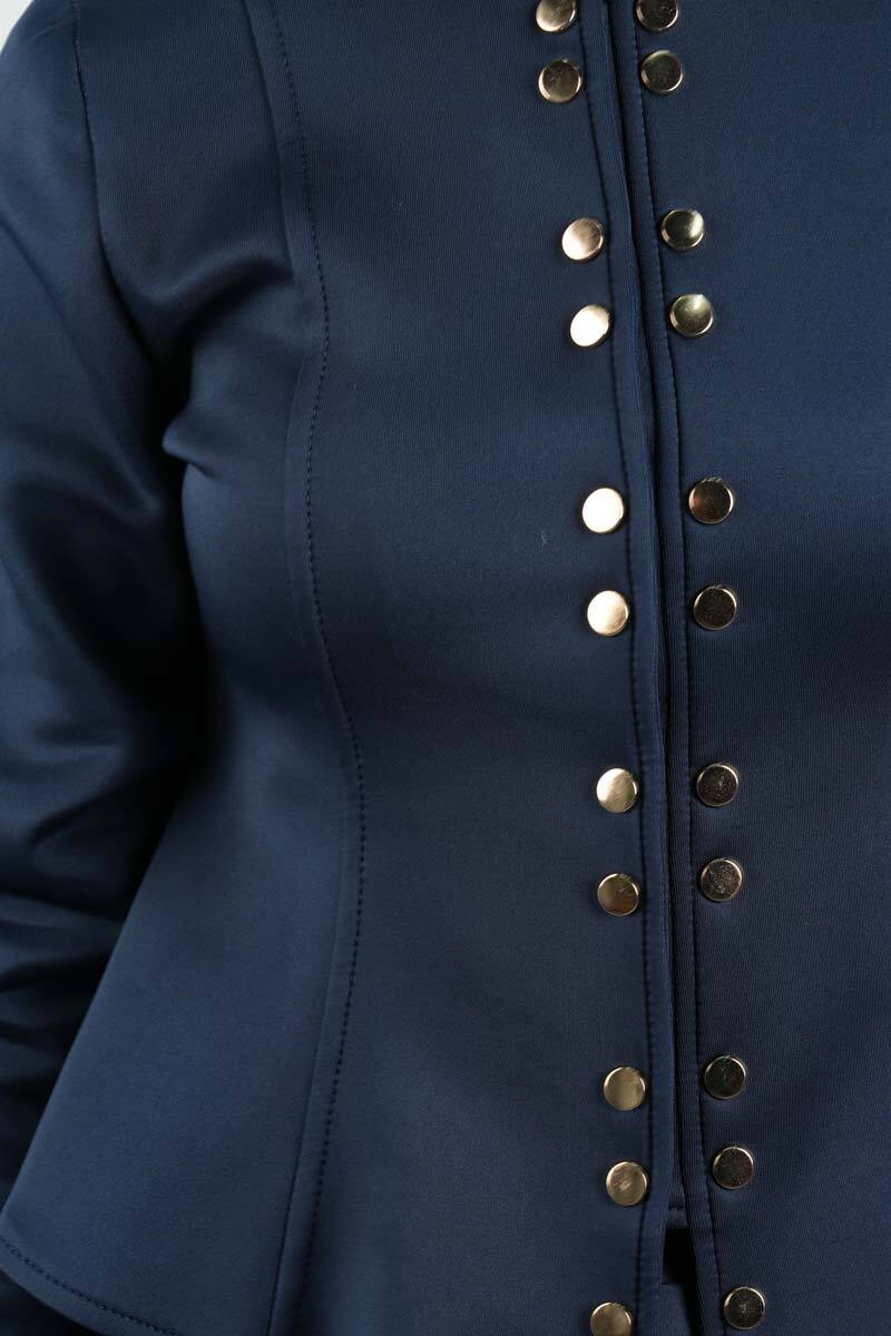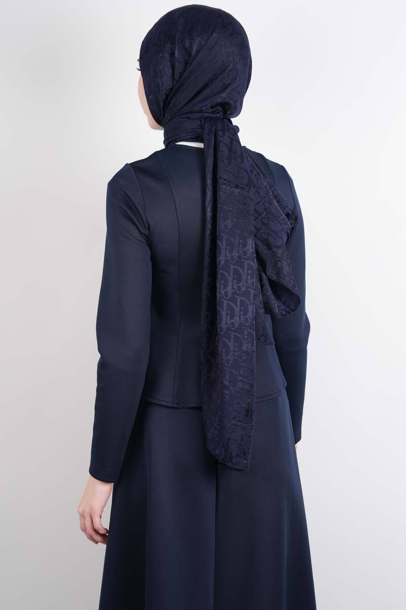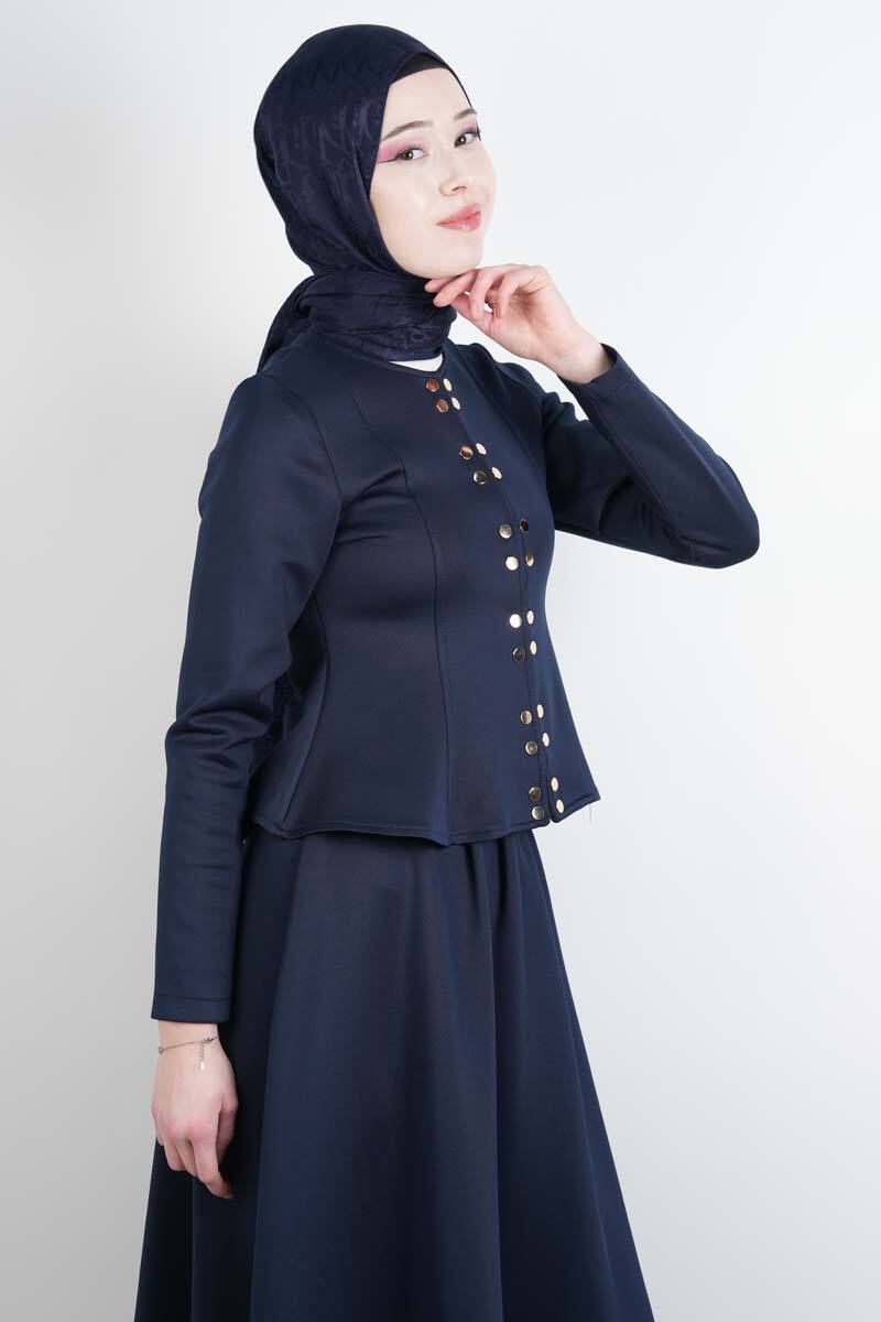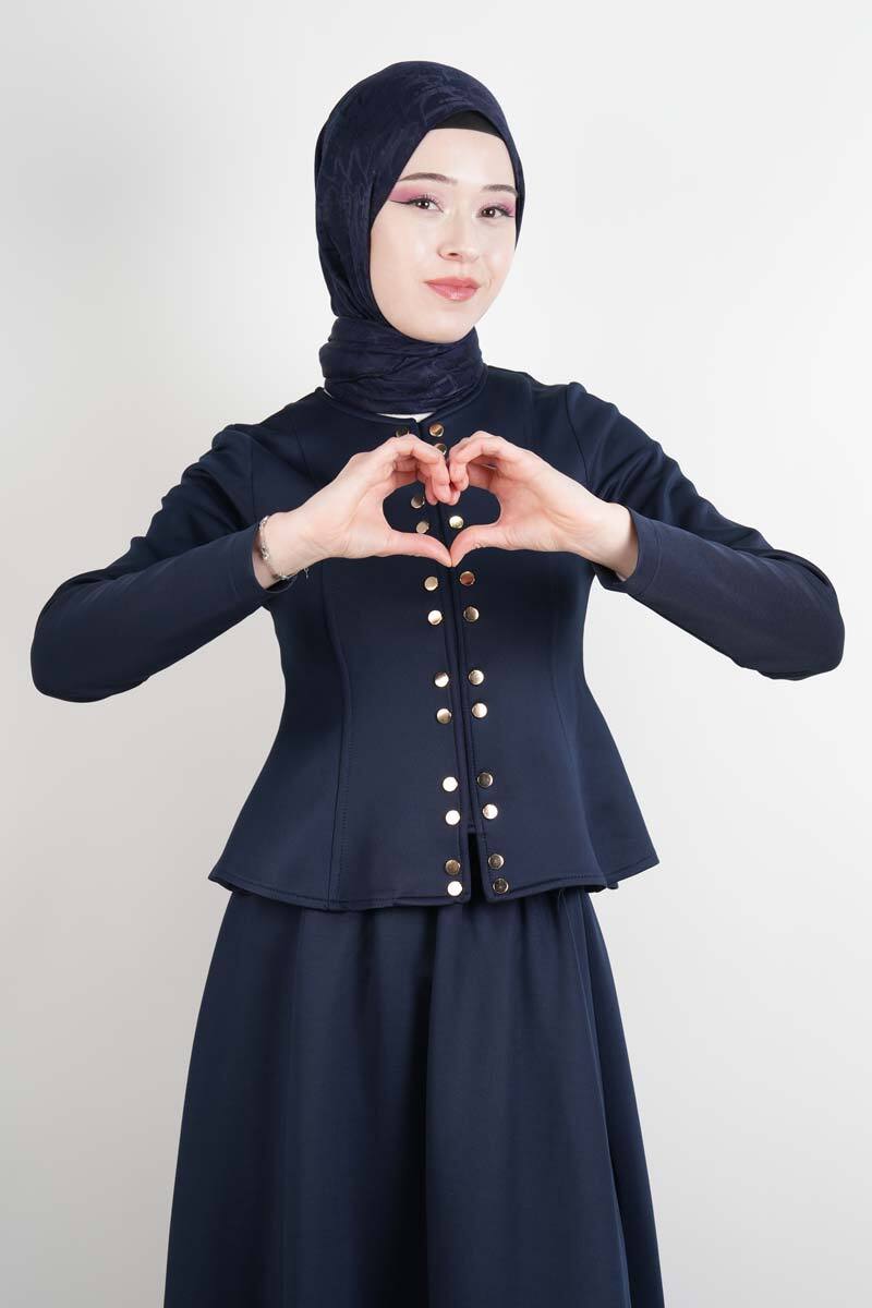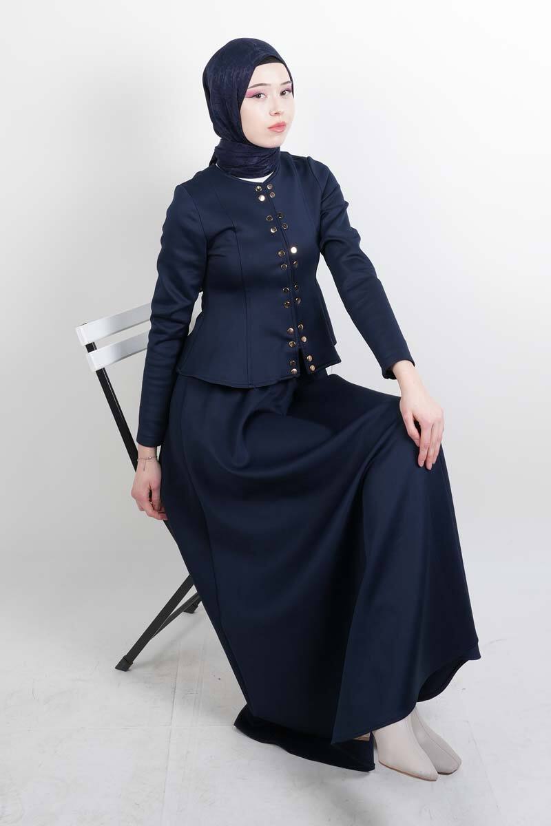 Tesettür Takım Çift Zımbalı Bel Oturtmalı Scuba Etekli Takım Lacivert