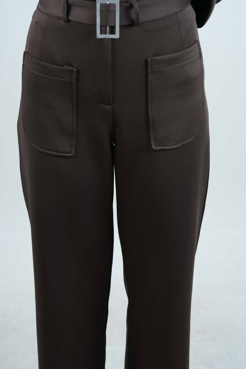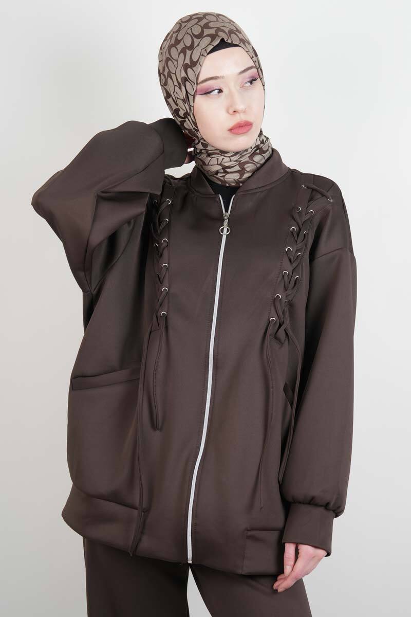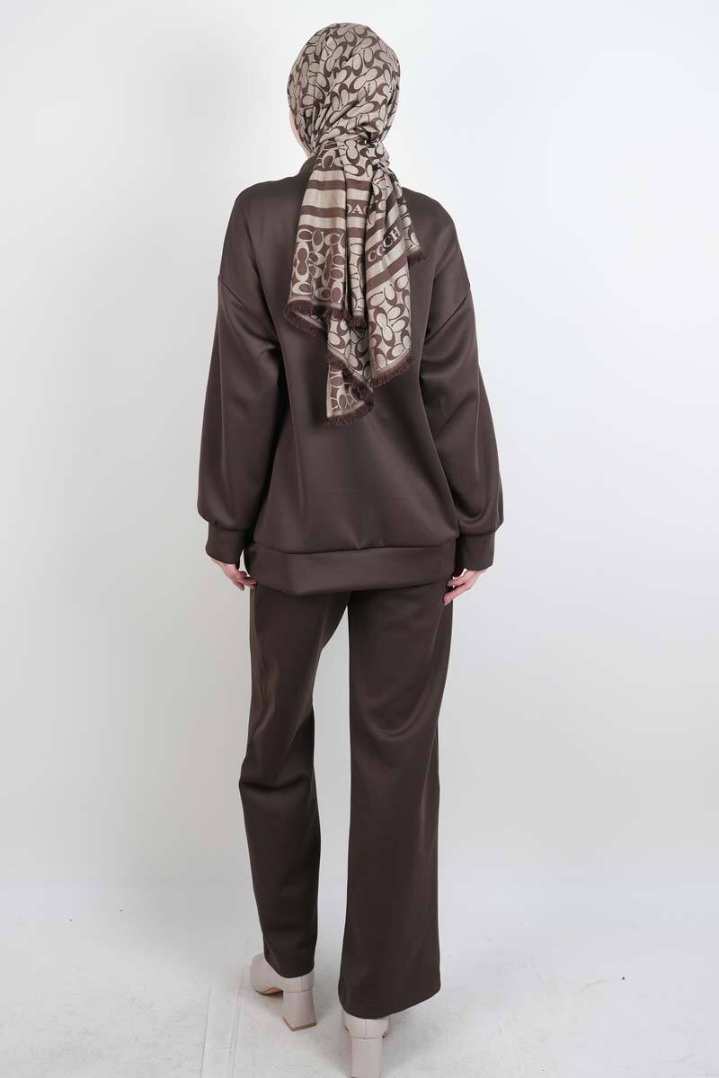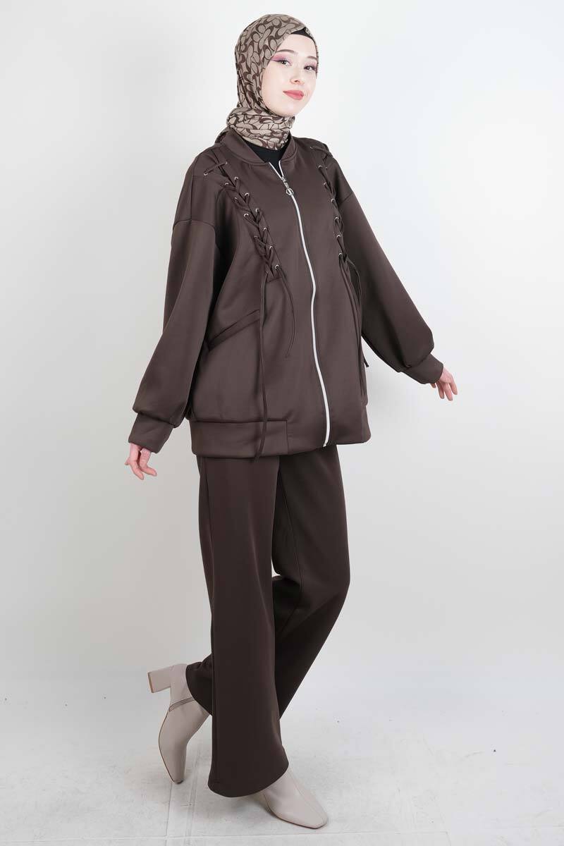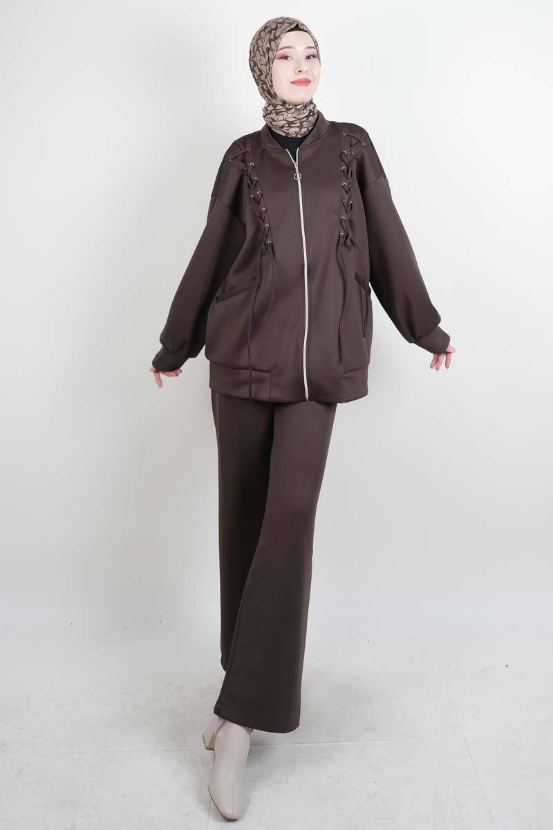 Tesettür Takım Ön Çapraz Bağcıklı Scuba İkili Takım Kahverengi