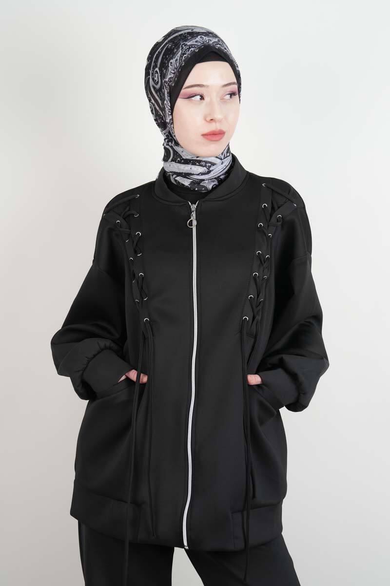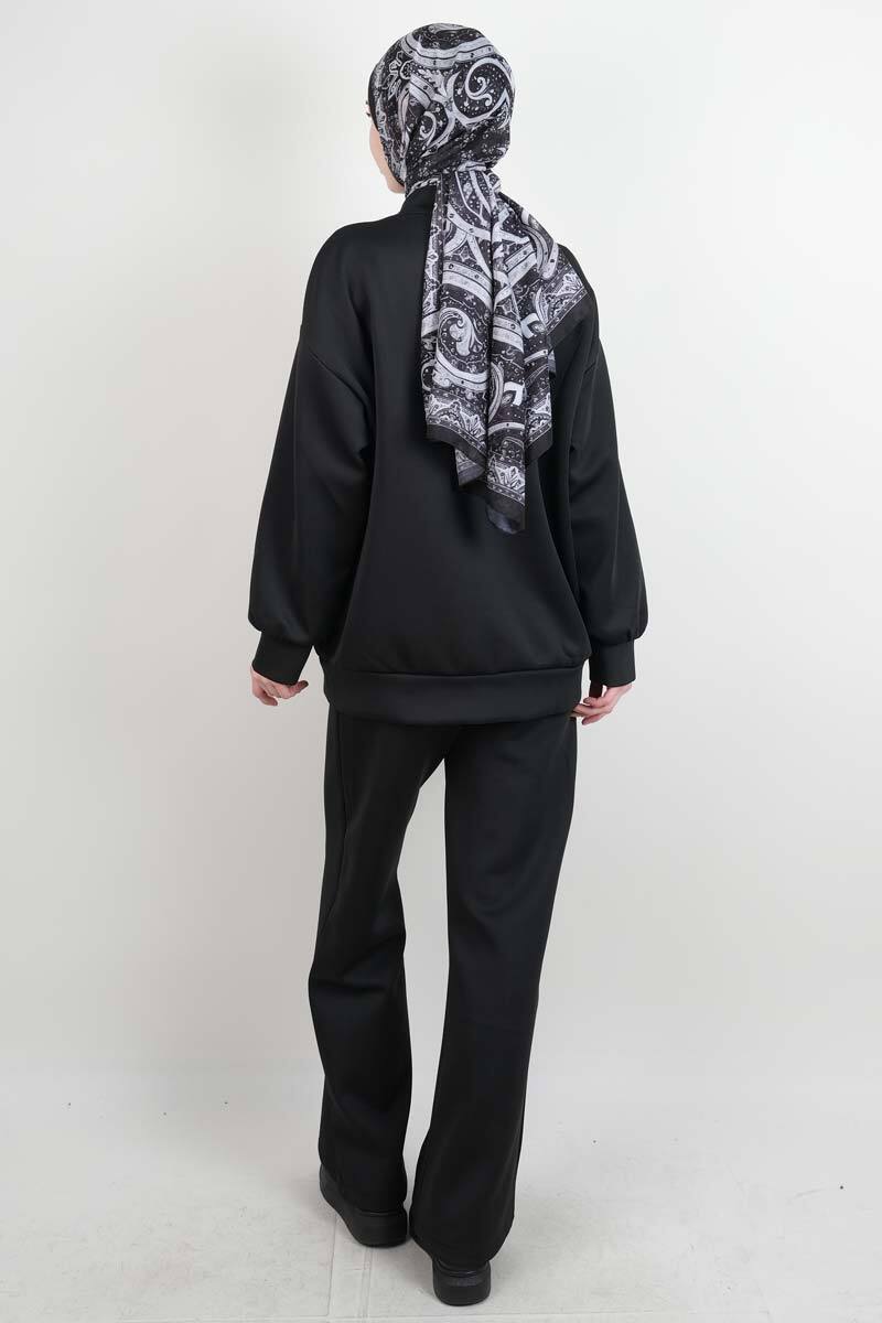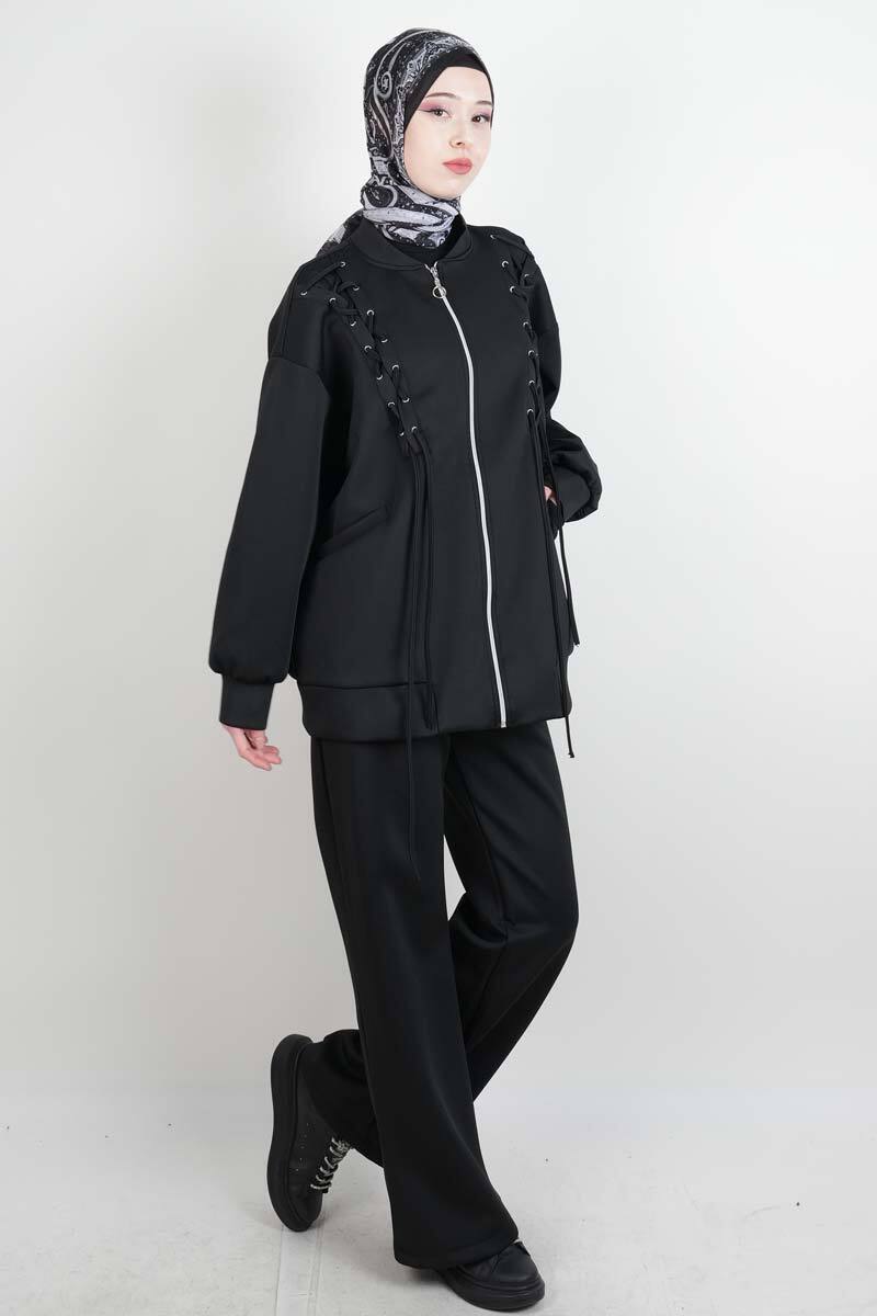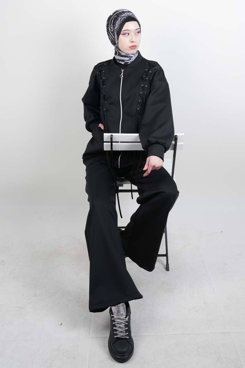 Tesettür Takım Ön Çapraz Bağcıklı Scuba İkili Takım Siyah