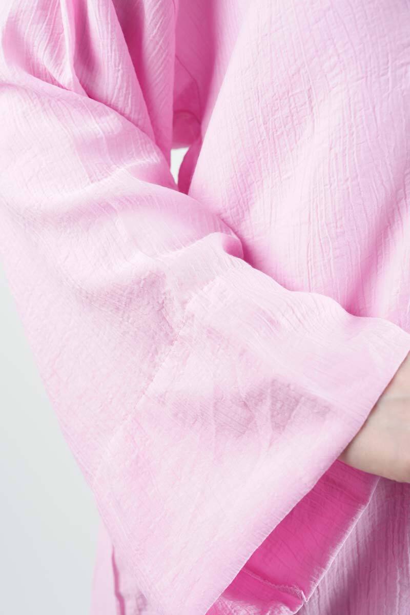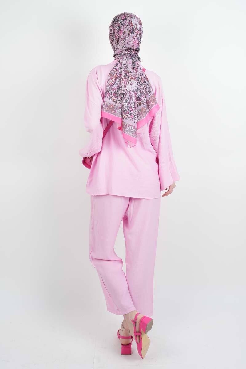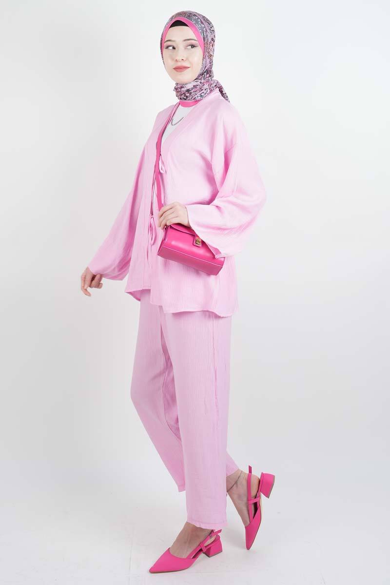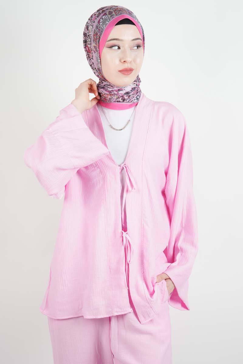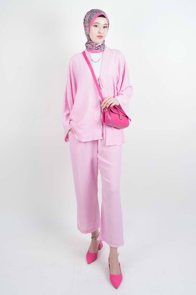 Tesettür Takım Önden 2 Bağlamalı Çilek 2'li Takım Pembe