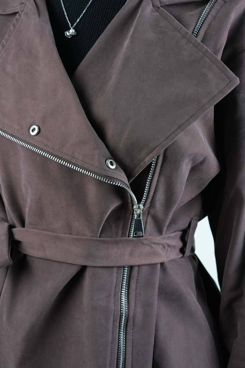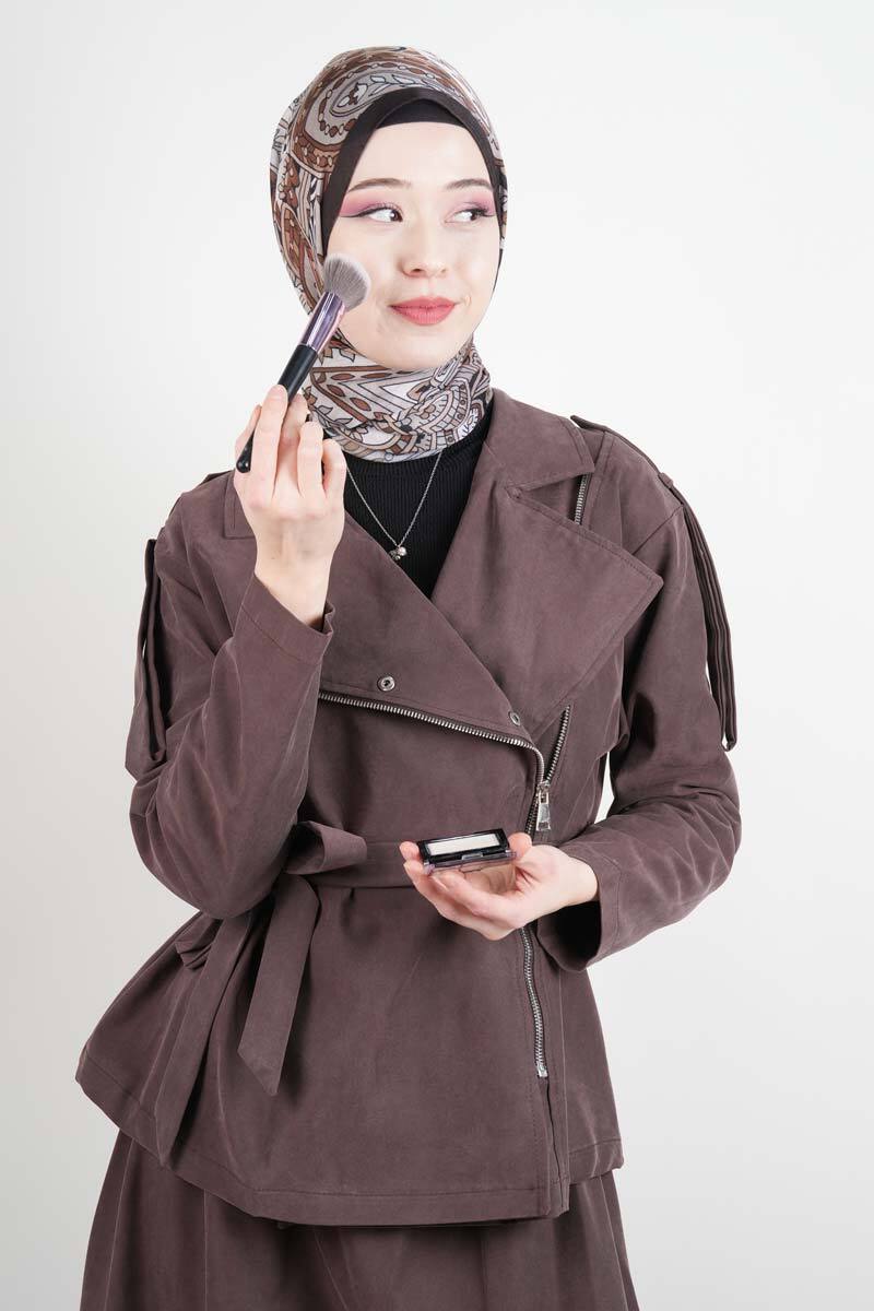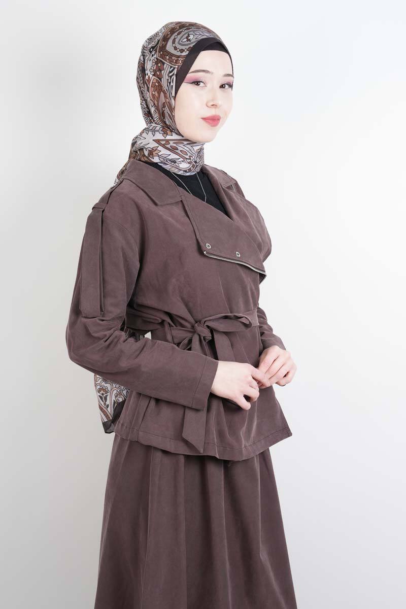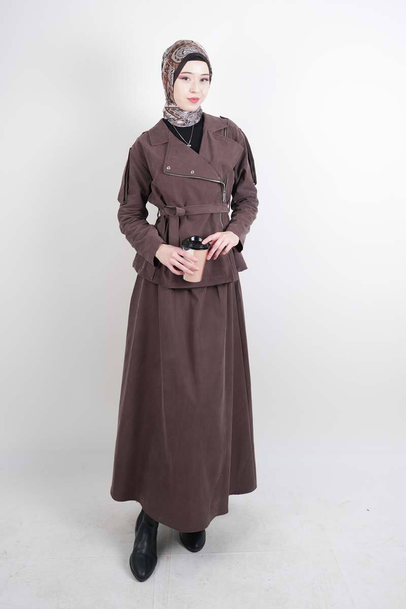 Tesettür Takım Yandan Fermuarlı Tansel Etekli İkili Takım Kahverengi