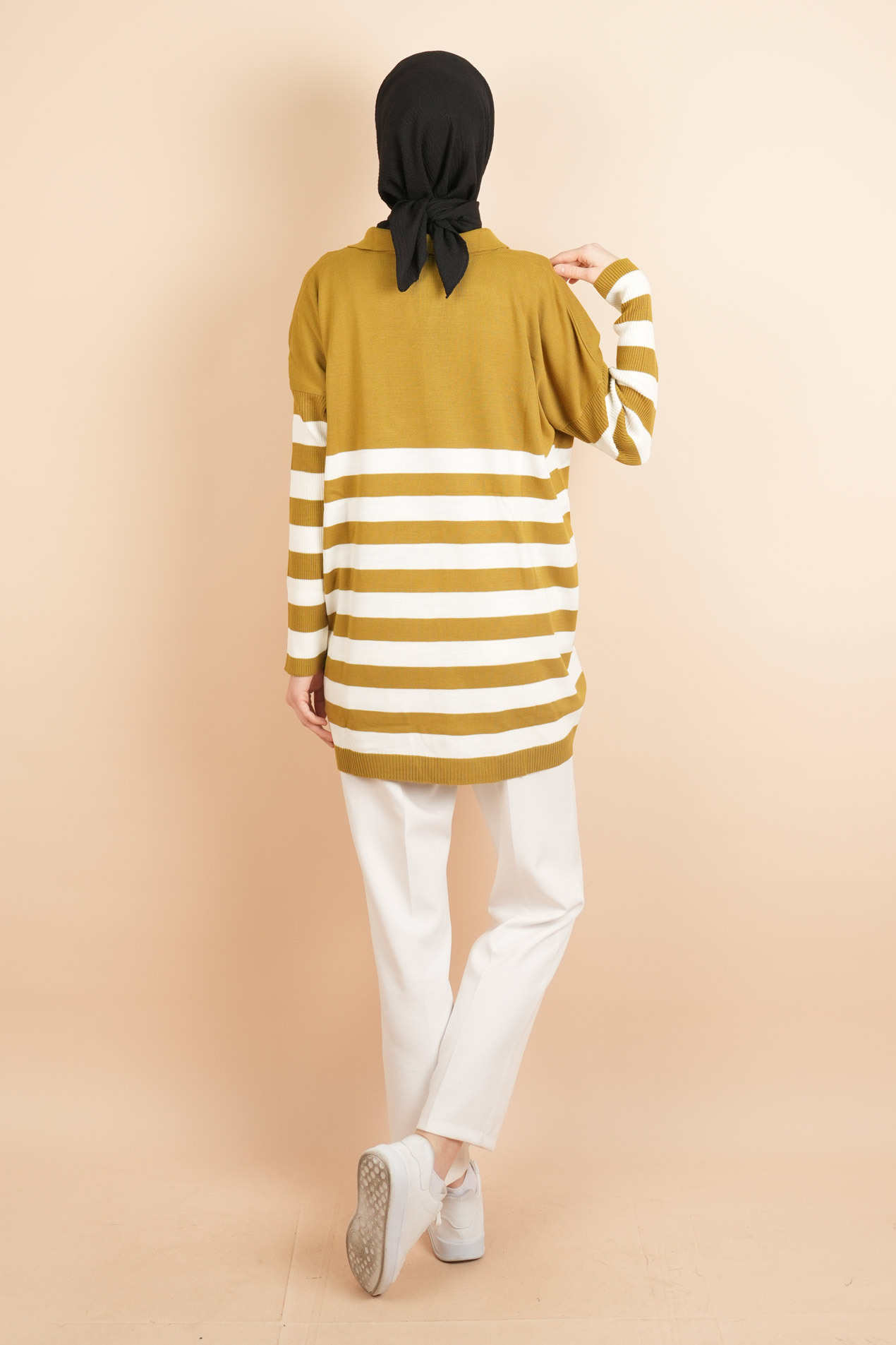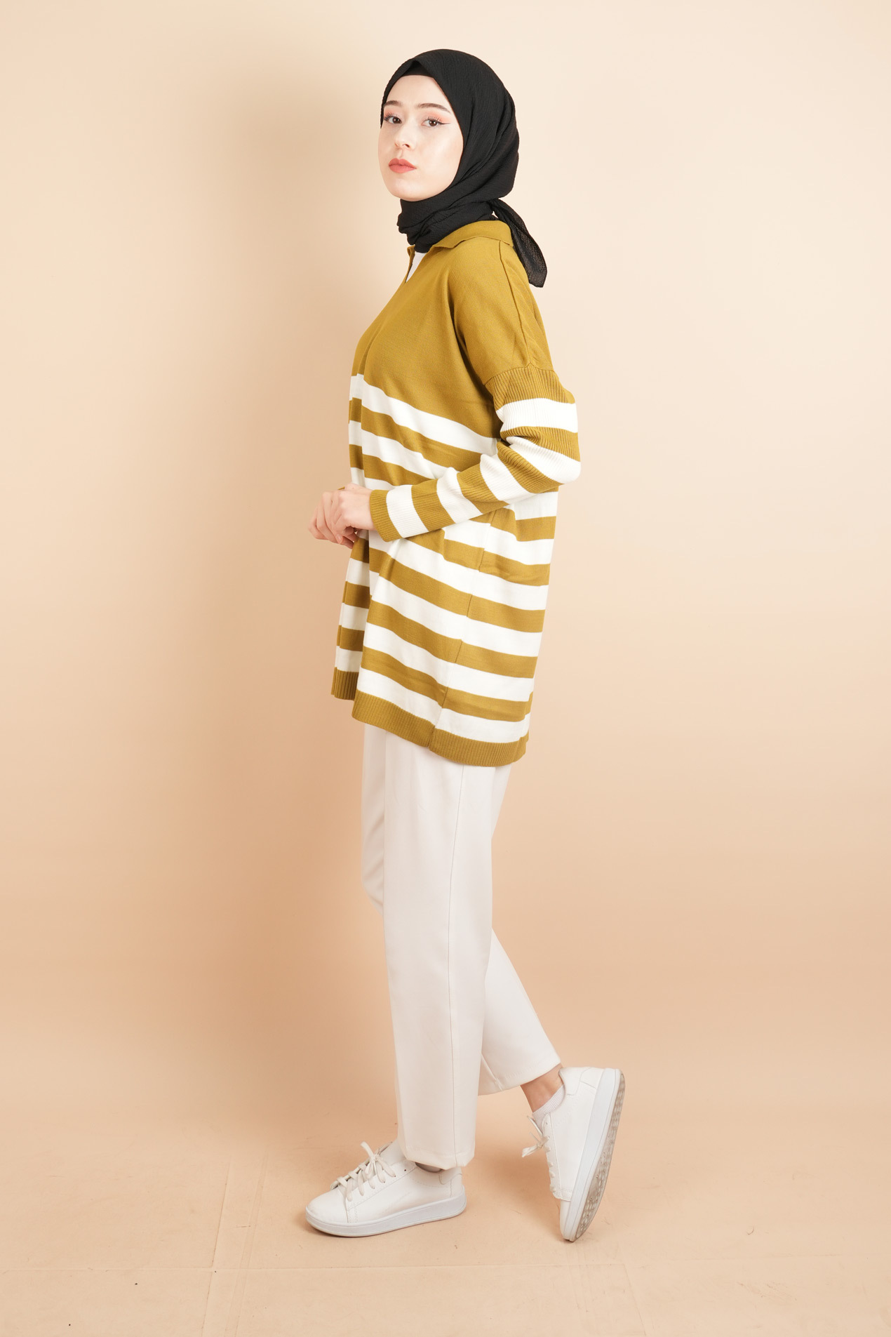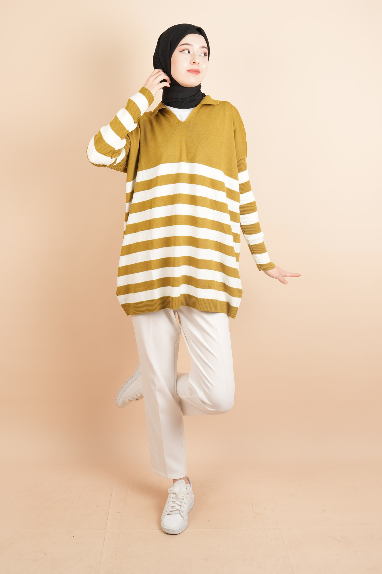 Basic Tunik Kazak, modern çizgileri ve rahat kesimiyle her mevsim şıklık sunar. Gömlek yaka detayı, spor ve klasik tarzı bir araya getirirken, çizgili deseniyle stilinize zarif bir dokunuş katıyor. Hem günlük kullanım hem de özel günler için ideal olan bu basic tunik kazak, tesettür modasında zamansız bir parça. Şıklık ve konforu bir arada arayanlar için mükemmel bir tercih!